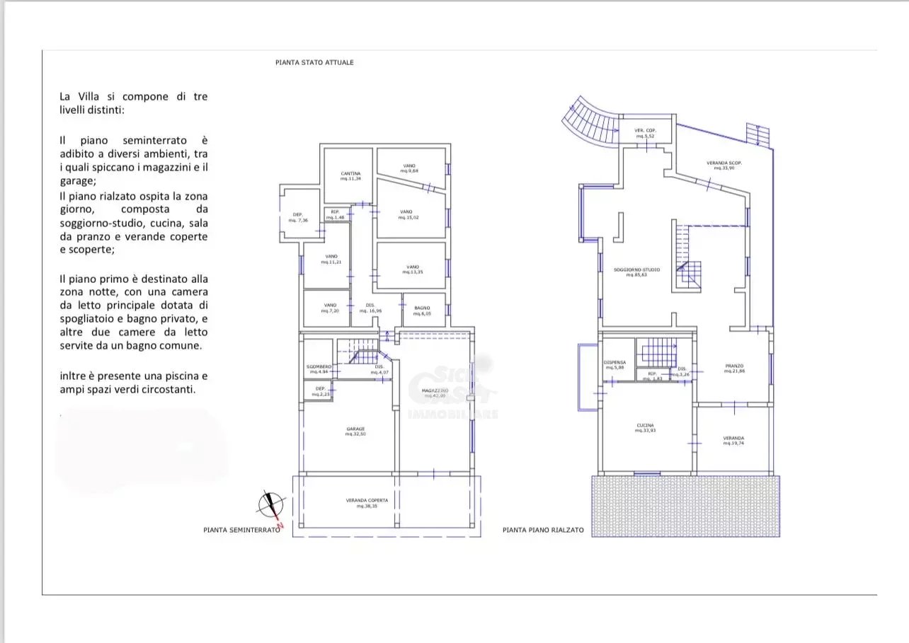 **Villa Marina: Eleganza e Comfort a Marsala** Scopri Villa Marina, una residenza elegante e ben strutturata situata nella splendida cornice di Marsala, in C. da Millami-Casazze. Perfetta per chi cerca spazi ampi e funzionali, questa villa offre una zona giorno luminosa e accogliente, ideale per momenti di relax e convivialità. La zona notte è confortevole e ben organizzata, con una camera da letto principale dotata di spogliatoio e bagno privato, oltre a due ulteriori camere servite da un bagno comune. Il fabbricato si estende su circa 600 m² commerciali, distribuiti su tre livelli distinti. Al piano seminterrato troverai magazzini e garage, mentre il piano rialzato ospita un soggiorno-studio, cucina, sala da pranzo e verande coperte e scoperte. Il piano primo è dedicato alla zona notte, garantendo privacy e comfort. All'esterno, un curato spazio verde circonda la villa, arricchito da una piscina che invita al relax. Il terreno di 4325 mq offre ampie possibilità di sviluppo grazie a diverse zone edificabili. Con orientamento sud-ovest, Villa Marina è l'opzione ideale per chi cerca una residenza di prestigio in una delle zone più affascinanti della Sicilia. Non perdere l'opportunità di vivere in questo angolo di paradiso! Richiesta 800.000,00 trattabili