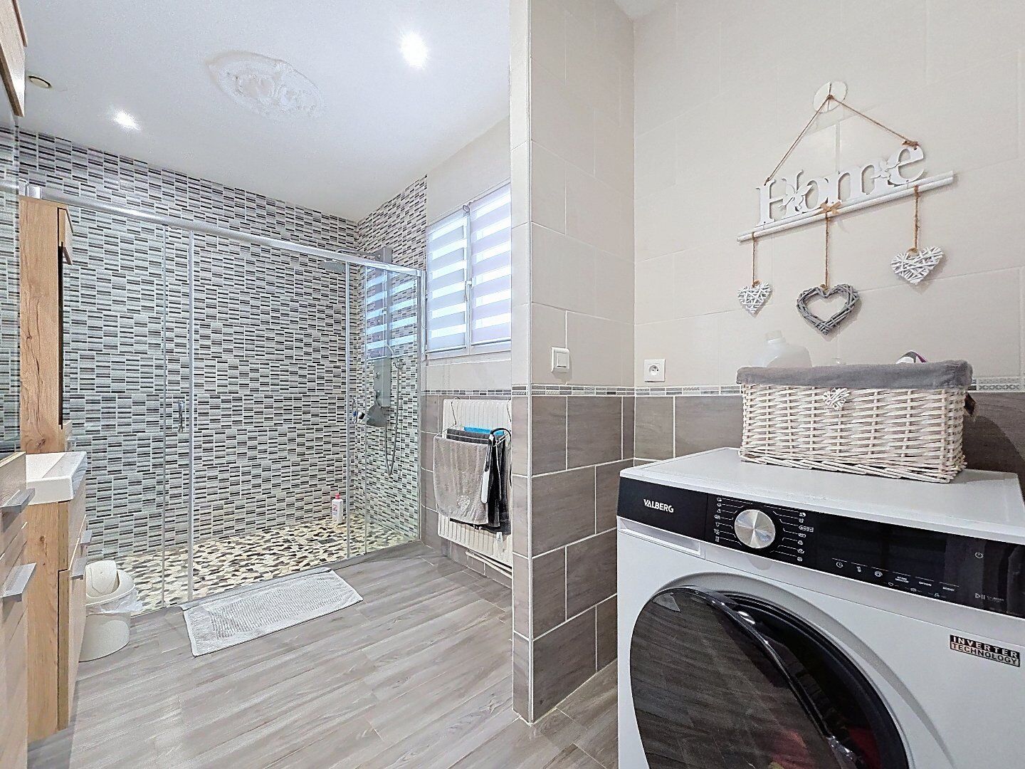 Villa au calme, rénovée d'une manière contemporaine avec piscine et vues dégagées. Située dans un environnement résidentiel paisible, cette belle villa de plain-pied entièrement rénovée en 2021 vous séduira par ses volumes, ses prestations de qualité et son extérieur parfaitement aménagé. D'une superficie habitable d'environ 127 m², la maison s'ouvre sur un vaste séjour-cuisine lumineux de plus de 60 m², idéal pour les moments en famille ou entre amis. Elle propose également trois chambres confortables, un bureau (ou chambre), une salle d'eau moderne, des WC séparés, ainsi qu'un hall d'entrée spacieux. Côté confort, le bien est équipé d'une pompe à chaleur air / eau récente, d'un insert bois et d'un ballon thermodynamique. Les extérieurs sont soignés et invitent à la détente : une grande terrasse en bois exotique de près de 60 m², une seconde terrasse semi-couverte, une piscine hors sol de belles dimensions, un chalet avec spa, un carport, un local technique, et un sous-sol avec garage d'environ 39 m² complètent l'ensemble. Offre unique. Visites sur rendez-vous.Informations LOI ALUR :