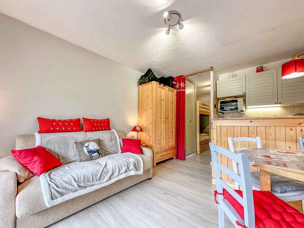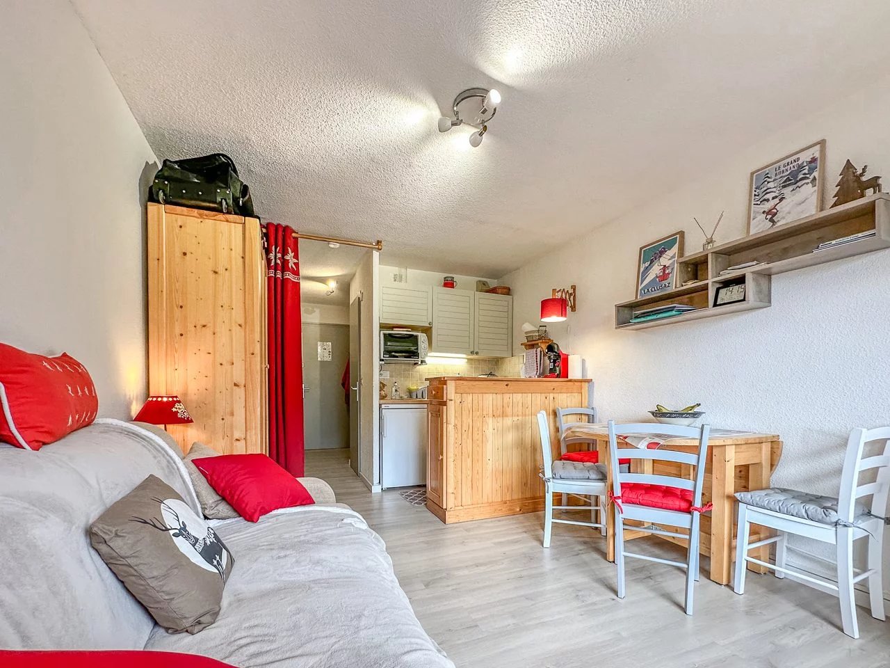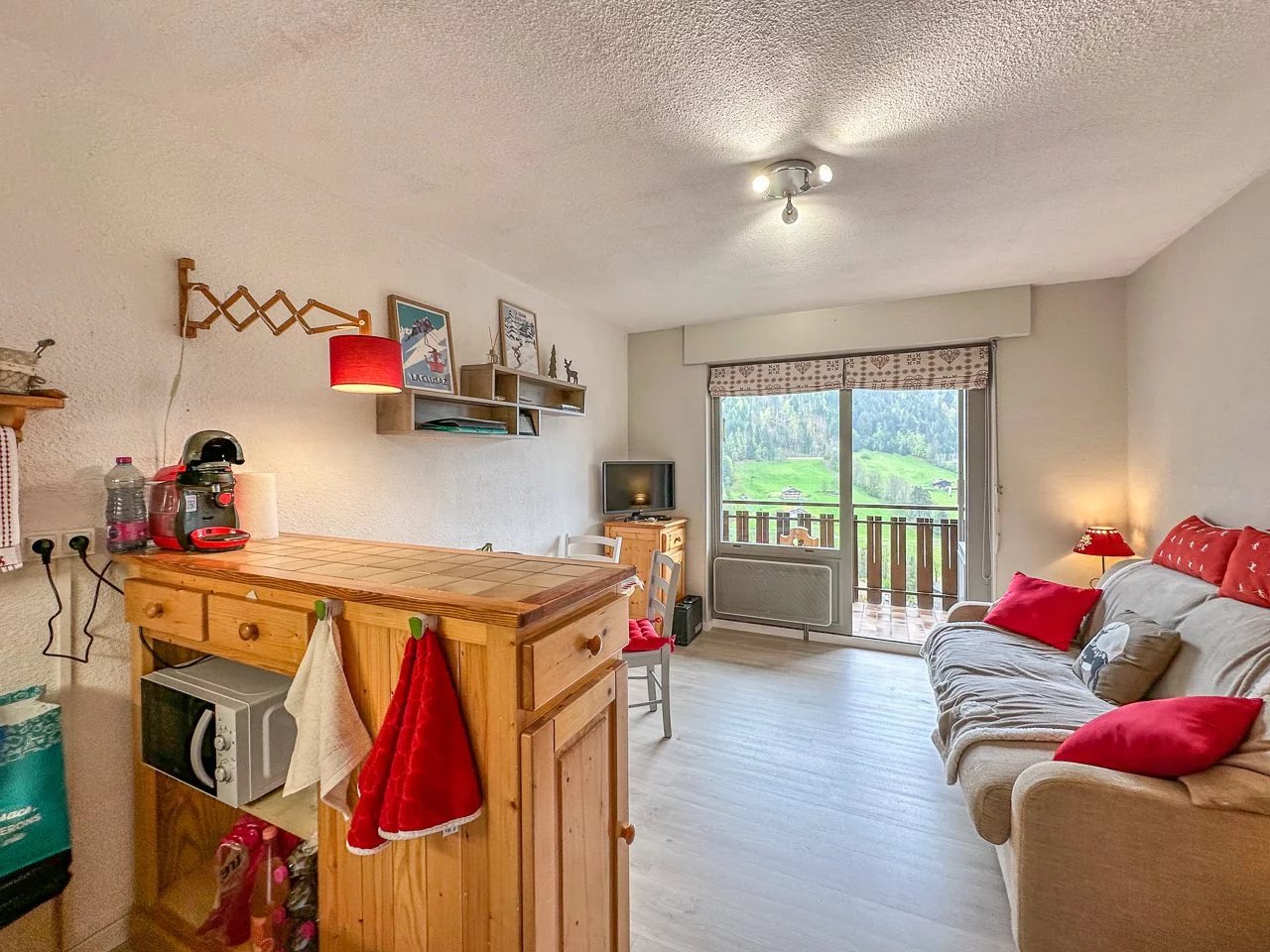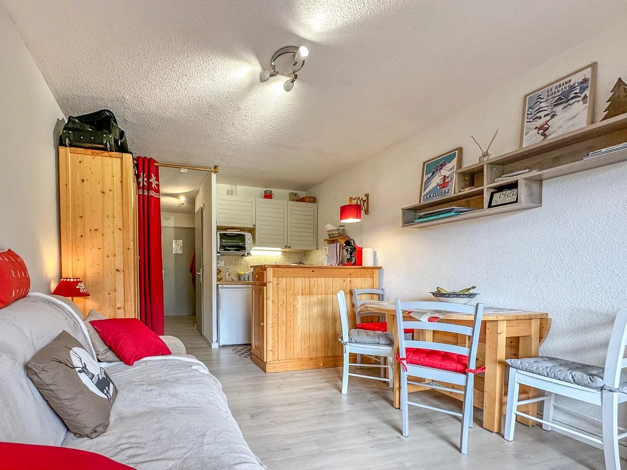 Studio de 20.9m² avec un balcon de 5.06m² situé dans un quartier prisé du Grand-Bornand à 1km des remontées mécaniques et avec une vue magnifique sur le village et la chaîne des Aravis. Il est composé d’une entrée avec un coin nuit, d’un espace de vieavec un canapé lit et d’une kitchenette entièrement équipée. Un casier à ski et une place de parking intérieur viennent compléter ce bien. L’appartement dispose de tout le confort pour passer un bon séjourà la montagne. Il peut accueillir jusqu’à 4 personnes. La Wifi sera disponible à partir d'Août. Le linge est en supplément sur demande. La taxe de séjour n'est pas inclus dans le tarif