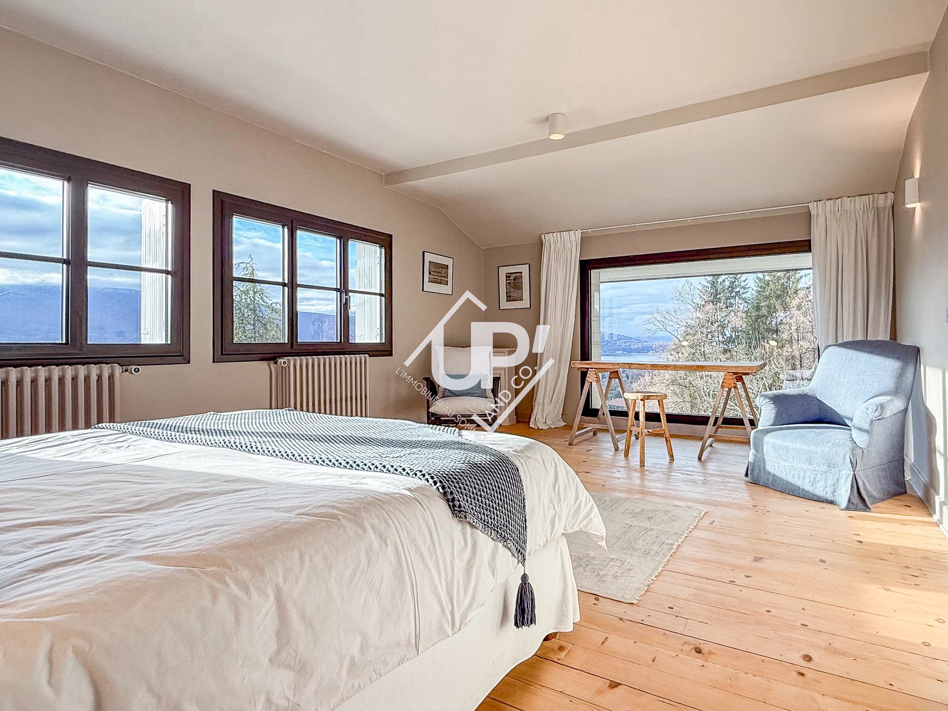 Bienvenue à Menthon-Saint-Bernard, perle de la rive Est du lac d’Annecy, où se mêlent douceur de vivre, nature préservée et panorama d’exception. Nichée en lisière de forêt, la Hauteclaire offre une vue plongeante sur le lac et les montagnes environnantes, invitant instantanément au calme, à la sérénité et au dépaysement. Conçue pour accueillir familles et groupes d’amis, la maison se compose de plusieurs niveaux harmonieusement agencés : Rez-de-jardin • Deux chambres lumineuses avec accès direct au jardin et salles de douche privatives, • Un salon confortable idéal pour partager un moment convivial, Premier niveau • Un spacieux séjour baigné de lumière, doté de larges ouvertures offrant une vue imprenable sur le lac d’Annecy avec accès sur une terrasse. • Une cuisine séparée entièrement équipée pour vos repas en toute autonomie. • Un bureau inspirant, parfait pour ceux qui souhaitent mêler télétravail et nature. Dernier niveau • Une chambre paisible donnant sur la forêt, • Une salle de douche avec WC, • Une somptueuse suite parentale avec douche privée et vue panoramique sur le lac : un véritable havre de tranquillité. Prestations bien-être Pour un séjour placé sous le signe de la détente, la propriété met à votre disposition un jacuzzi et un sauna, idéals pour se ressourcer après une journée d’activités au grand air. ________________________________________ Découvrez Menthon-Saint-Bernard Ce village emblématique, dominé par son romantique château de Menthon, est réputé pour son charme authentique et son cadre naturel exceptionnel. Depuis la maison, vous pourrez profiter : • Des plages du lac (plage de Menthon, plage de la Brune), parfaites pour la baignade et les sports nautiques (paddle, voile, kayak). • De magnifiques randonnées accessibles depuis la forêt attenante ou vers le Roc de Chère, réserve naturelle offrant des points de vue spectaculaires. • De balades à vélo sur les itinéraires cyclables qui longent le lac. • Du port de Menthon, pour des croisières sur le lac ou un dîner au bord de l’eau. • De petites adresses gourmandes, du marché local aux restaurants réputés du village et des alentours. • Du golf à proximité. À seulement quelques minutes d’Annecy, Menthon-Saint-Bernard est le point de départ rêvé pour explorer les trésors du lac, les activités alpines et les villages typiques de la région. Une maison chaleureuse, un cadre exceptionnel, des prestations haut de gamme : tout est réuni pour vivre un séjour inoubliable à Menthon-Saint-Bernard. N’attendez plus pour réserver votre parenthèse de détente entre lac, montagnes et forêt.
