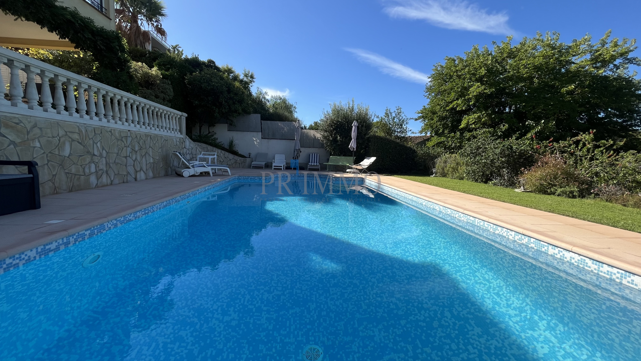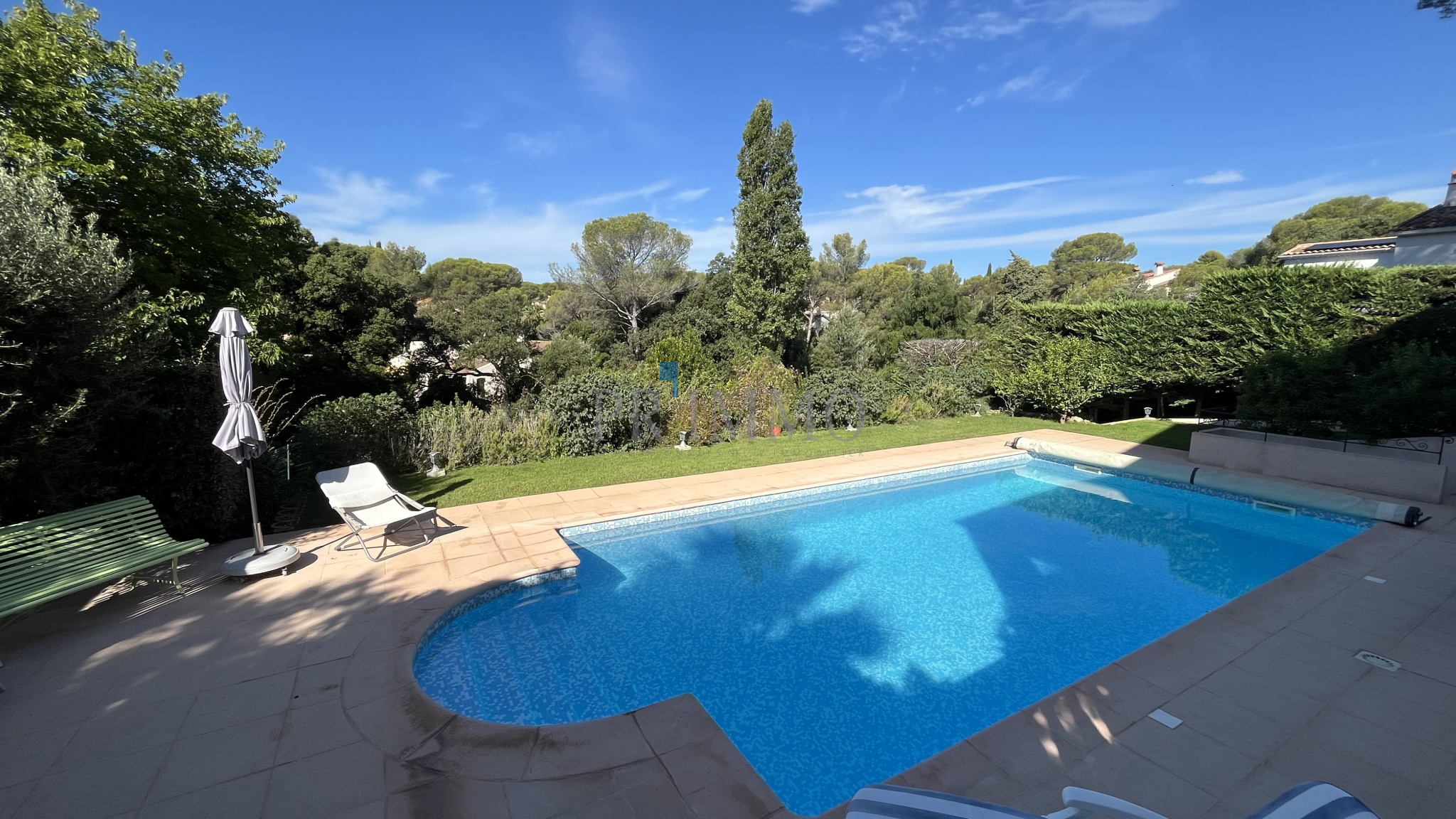 magnifique villa de 200 m2 sur un terrain de 1050 m2 avec piscine composée de 3 chambres, 2 bains , grand sejour cuisine americaine de 60 m2, buanderie, salle de jeu, forage, arrosage auto. Un trés beau 2 pièces complète ce bien . Le tout en excellent état.