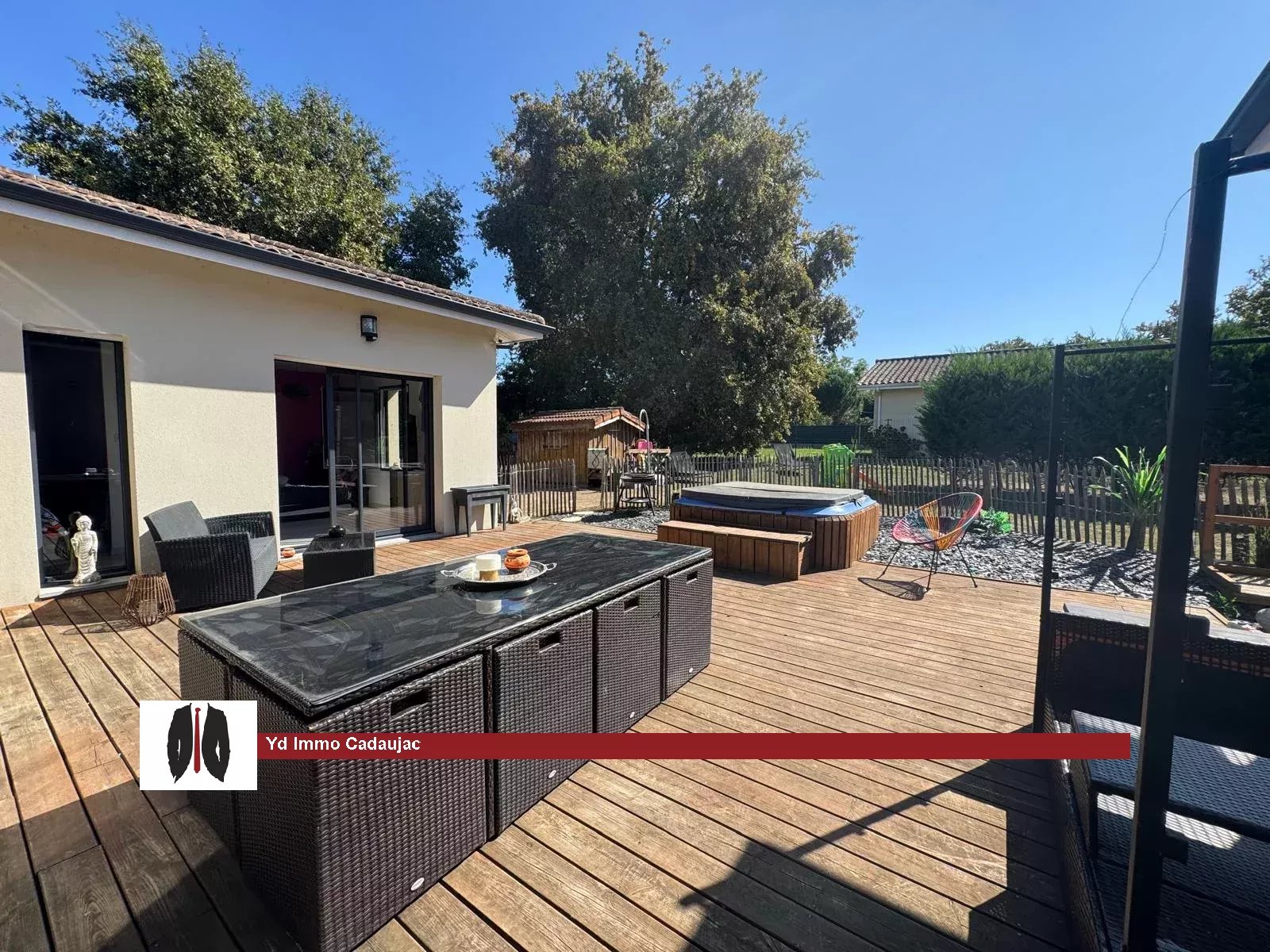 Martillac — secteur Vigneau-de-Bas Très belle maison contemporaine, construite en 2019, implantée dans un environnement calme. Elle offre de beaux volumes : une entrée avec placard et toilettes, un séjour traversant de plus de 60 m², lumineux, ouvert sur une cuisine moderne aménagée et équipée donnant sur un cellier. Côté nuit, une suite parentale avec douche et dressing, bénéficiant d’une vue sur la terrasse. À l’opposé, trois chambres avec placards et une salle de bains comprenant douche et baignoire. L’extérieur comprend un agréable jardin de plus de 1 200 m², orienté plein sud, avec jacuzzi, terrasse en bois et terrain de pétanque pour profiter des soirées en famille ou entre amis. Un garage d’environ 20 m² et plusieurs places de stationnement complètent ce bien. Chauffage par le sol, confort et fonctionnalité pour une qualité de vie appréciable. Coup de cœur assuré ! Pour plus de renseignements, contactez-nous.