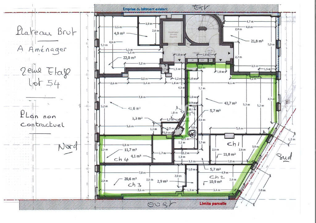 MAISON ROUGE vous propose, au coeur du quartier commerçant de Boulogne Nord, un appartement traversant lumineux d'environ 118 m² (lot n°54), situé au 2ème étage avec ascenseur. Ce plateau, livré brut, offre une liberté totale d'aménagement, avec la possibilité de créer jusqu'à 4 chambres selon vos besoins et vos envies. Des plans et devis pour l'aménagement sont disponibles sur demande. Un emplacement de parking est inclus. La résidence, entièrement réhabilitée en 2022, respecte les normes RT 2012 et dispose d'un accès PMR. Les professions libérales sont possibles, et les frais de notaire sont réduits. Le montant des charges de copropriété est communiqué à titre indicatif. Idéalement situé, à seulement 1 minute à pied du métro L10 et des lignes de bus. Un emplacement rare dans un secteur recherché ! Prix FAI : 1 125 000 euros dont 3.00 % honoraires TTC à la charge de l'acquéreur. Copropriété de 51 lots - dont 8 lots habitation. (Pas de procédure en cours). Charges annuelles : 3553 euros.