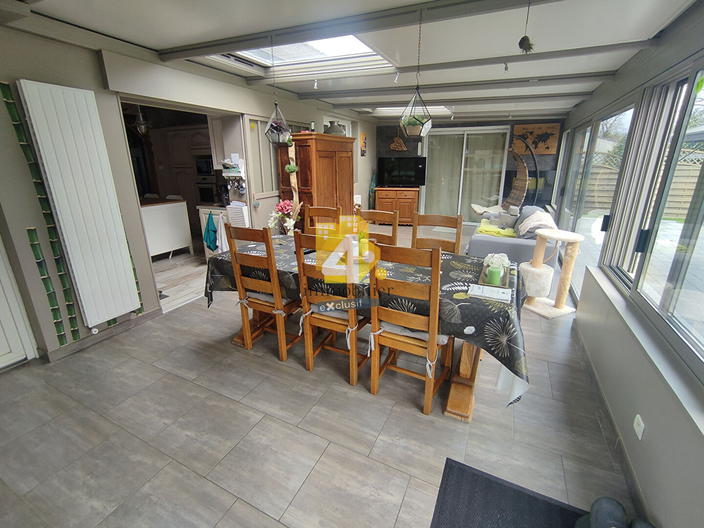Maison de plain pied en parfait état offrant sur salon séjour avec poêle à bois, cuisine ouverte aménagée équipée donnant sur une magnifique véranda de plus 30 m², 3 chambres et un grand dressing. Le tout sur terrain clos d'environ 2 122 m² avec double garage et atelier, abri jardin. PRESTATIONS SOIGNEES Prix honoraires inclus 290 500 euros soit 280 000 euros vendeur + 3.75% euros ttc charge acquéreurs. 4% IMMOBILIER PONTCHATEAU HONORAIRES REDUITS