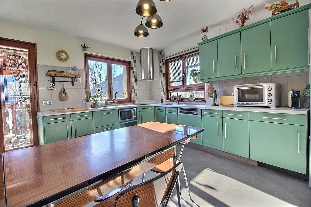 Située sur la commune de Féternes, au lieu-dit La Plantaz, cette charmante maison mitoyenne développe 162.99 m² habitables pour une surface utile totale de 190 m², sur un terrain de 300 m². Elle bénéficie d'un joli jardin attenant offrant une vue dégagée sur la montagne, ainsi qu'une exposition plein sud dans les pièces de vie, garantissant une luminosité naturelle agréable tout au long de la journée. La maison se compose de deux chambres, une salle d'eau, d'un salon-séjour avec cuisine ouverte, ainsi que d'une très grande pièce sous combles offrant un fort potentiel d'aménagement. Cet espace modulable permet la création de chambres supplémentaires ou d'un espace de vie adapté à vos besoins. Le bien comprend également un appartement de type 2 en rez-de-chaussée, idéal pour accueillir famille et amis ou pour un projet d'investissement locatif. Les annexes comprennent un garage, deux places de stationnement extérieures et une cave, offrant de nombreuses solutions de rangement et de stationnement. En complément, la propriété dispose d'un terrain agricole de 900 m², situé à seulement deux minutes à pied, déjà planté d'arbres fruitiers. Ce terrain offre des possibilités supplémentaires pour un potager ou tout autre projet agricole. Cette maison représente une opportunité rare, alliant volumes généreux, luminosité et potentiel d'aménagement, dans un environnement naturel et calme, avec une vue imprenable sur la montagne. Exclusivité !