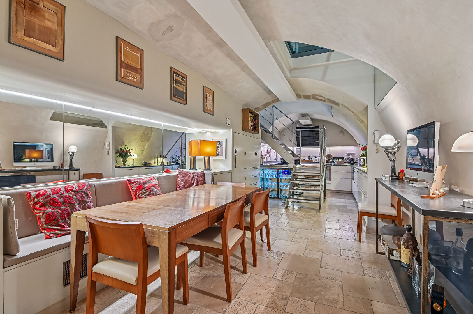 A proximité immédiate des quais de Seine, découvrez ce bien atypique de 148 m² au sol, et 33,55m2 Loi Carrez situé dans un élégant immeuble en pierre de taille. L'entrée s'ouvre sur un salon au rez-de-chaussée, bénéficiant d'une exposition plein sud, baigné de lumière naturelle. Un superbe escalier mène aux espaces en sous-sol, pensés comme un véritable lieu de vie. Vous y trouverez une cuisine entièrement équipée, une salle à manger agrémentée de nombreux rangements sur mesure, ainsi qu'une première chambre avec sa salle de douche privative. Trois autres chambres aux plafonds voûtés complètent l'espace nuit, accompagnées d'une seconde salle de douche avec WC, d'un WC indépendant, et de multiples rangements parfaitement intégrés. Un espace buanderie isolé complète ce bien. Possibilité d'acquérir un emplacement parking à 50 000 euros. Copropriété de 111 lots - dont 73 lots habitation.(Pas de procédure en cours).