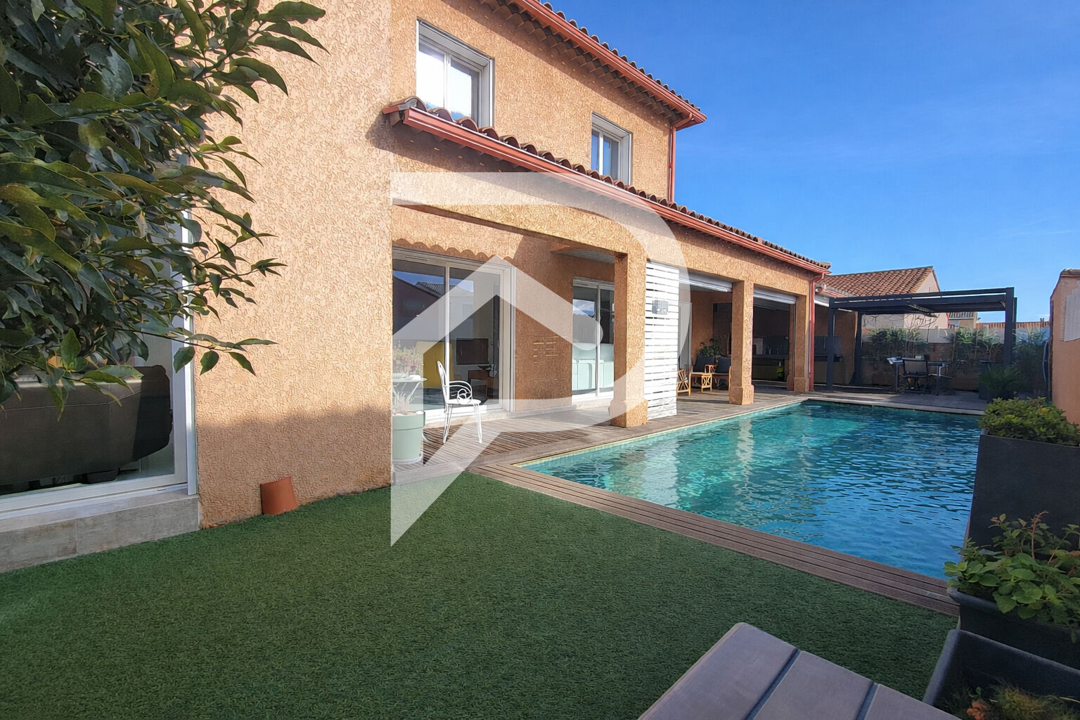 COUP DE COEUR ASSURÉ Cette superbe villa de 160 m² habitables séduit dès le premier regard par son design soigné et ses matériaux élégants. Son vaste espace de vie de plus de 77 m², baigné de lumière, offre une circulation fluide et conviviale, idéale pour recevoir famille et amis. La cuisine, est entièrement équipée, fonctionnelle et pensée pour le partage, avec îlot central et nombreux rangements. La villa dispose d'une magnifique suite parentale avec dressing et salle d'eau privative. Une buanderie avec accès direct au garage complète ce niveau. A l'étage, vous trouverez deux belles chambres, une salle d'eau avec WC, ainsi qu'une chambre mansardée parfaite pour un enfant, un ado ou des invités occasionnels. Côté prestations, rien n'a été laissé au hasard : climatisation réversible, poêle à granulés, aspiration centralisée, volets roulants électriques, double vitrage, le tout dans un état irréprochable. A l'extérieur, le jardin cosy est une véritable invitation à la détente avec sa piscine esprit Bali, sa cuisine d'été, son barbecue et son four à pizza. Garage carrelé de 23 m² et stationnements extérieurs complètent ce bien. Située dans un quartier recherché, cette maison clé en main est à découvrir sans tarder ! (4.49 % honoraires TTC à la charge de l'acquéreur.) Claire JOURDAN (EI) Agent Commercial - Numéro RSAC : 985376219 - Perpignan.