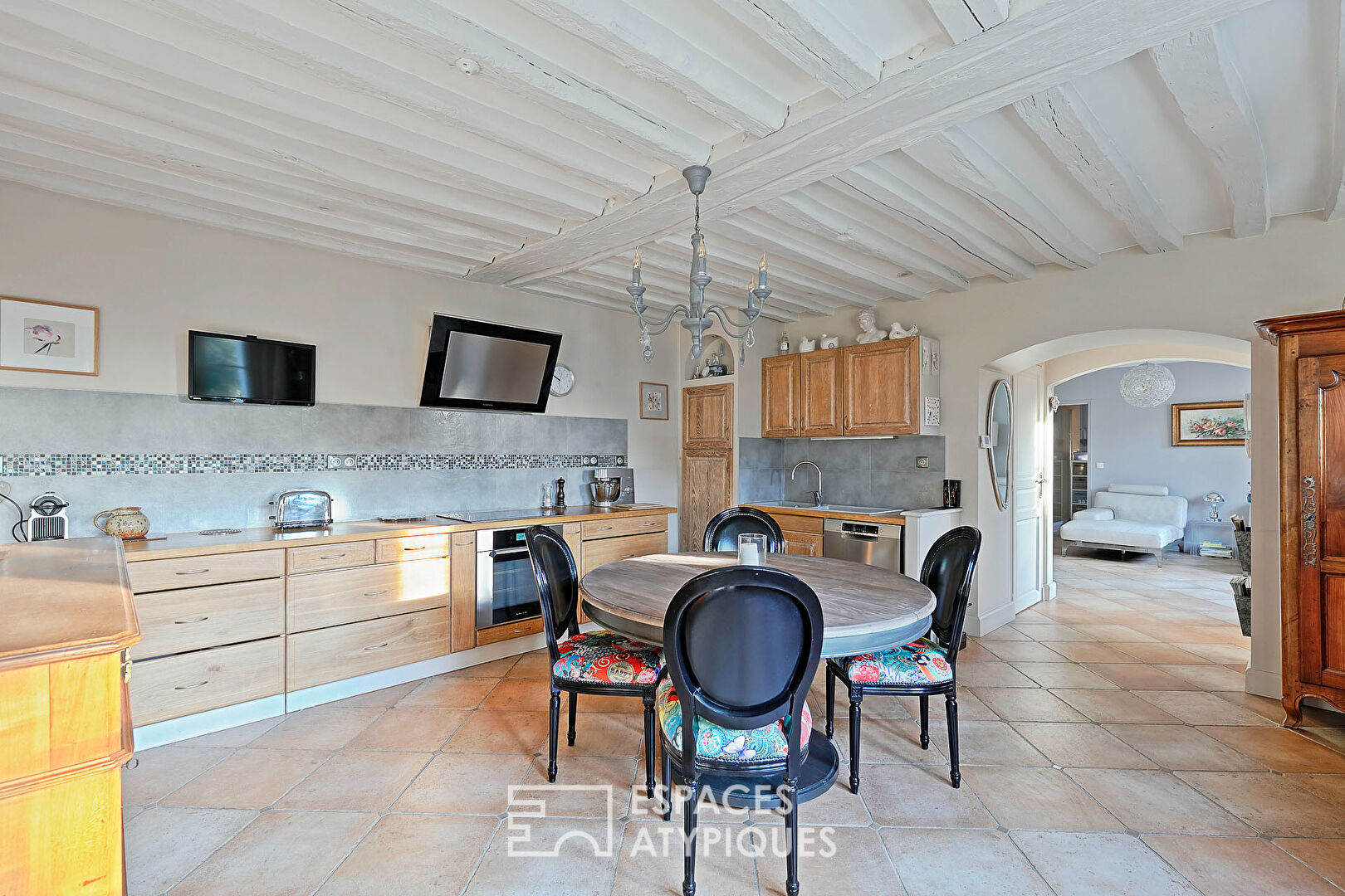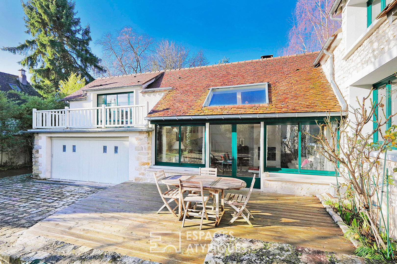 EN EXCLUSIVITÉ Derrière un mur en pierre soigneusement préservé, l'arrivée se fait par un porche charretier coiffé de sa casquette en tuiles anciennes. Un élément architectural rare, chargé de caractère, qui donne immédiatement le ton. Le portail motorisé en bois, assorti à une porte piétonne équipée d'une gâche électrique commandée depuis la maison, ouvre sur une propriété entièrement close de murs. Passé ce seuil, la cour se dévoile. Une cour pavée, intime et élégante, où un ginkgo biloba majestueux s'impose naturellement. Arbre remarquable, il accompagne la lecture des volumes et apporte une présence végétale forte, participant pleinement à l'identité du lieu. La maison en pierre, parfaitement intégrée à son environnement, fait face à un double garage de 26 m², discret et fonctionnel. L'ensemble compose une atmosphère paisible et protégée, hors du temps, au coeur d'un village très prisé, à seulement dix minutes de Fontainebleau. La maison développe environ 185 m² habitables, implantés sur un terrain d'environ 450 m². Au rez-de-chaussée, l'entrée accueille avec sobriété et efficacité. Un placard de rangement intégré permet de déposer manteaux et effets personnels sans encombrer l'espace. Sur la gauche, la maison s'ouvre sur une cuisine dinatoire généreuse et conviviale. Le sol en pierre naturelle, les poutres apparentes et le mobilier en bois composent une ambiance chaleureuse et authentique. La cuisine s'organise comme un véritable lieu de vie, pensé pour recevoir et partager. Quelques marches conduisent ensuite vers un espace intermédiaire, libre de toute contrainte d'usage, avant d'accéder à la pièce maîtresse. Le séjour cathédral impressionne par ses volumes, sa hauteur sous plafond et ses murs en pierre apparente. Les poutres anciennes structurent l'espace avec caractère. Un insert vient ancrer l'ensemble, apportant chaleur et confort en toute saison. De larges baies vitrées prolongent naturellement le séjour vers l'extérieur, ouvrant sur une terrasse en bois, véritable extension de la pièce de vie, tournée vers la cour pavée. Dedans et dehors dialoguent avec évidence. Depuis le séjour, un escalier mène à une chambre en étage, en position dominante. Elle bénéficie d'un accès direct à un balcon surplombant la cour et les bâtis en pierre. Un espace intime, lumineux, parfaitement à l'écart. Depuis l'entrée, sur la droite, un espace indépendant offre un volume calme et modulable, aujourd'hui aménagé en salon d'appoint. Une salle d'eau avec toilettes complète ce niveau, permettant une organisation fluide et confortable du rez-de-chaussée. Un escalier mène ensuite à un étage entièrement dédié à l'espace nuit. Un couloir distribue les différentes pièces, préservant l'intimité de chacune. Un toilette indépendant avec lave-mains et bidet complète ce niveau. Deux chambres prennent place à cet étage. La première propose un volume confortable, lumineux et équilibré. La seconde s'impose comme une véritable suite, avec ses placards intégrés aux lignes graphiques, optimisant parfaitement l'espace. Elle dispose de sa propre salle de bains, comprenant baignoire, douche et toilettes, dans une configuration ouverte qui accentue les volumes et le confort. Les matériaux, la lumière naturelle et les proportions créent un espace nuit élégant et apaisant. Enfin, une cave voûtée vient compléter ce bien. Un espace sain et authentique, idéal pour le stockage, le vin ou tout projet en lien avec l'âme ancienne de la maison. Une propriété rare, cohérente et élégante, où le charme de l'ancien est pleinement assumé. Un lieu de vie singulier, intime et généreux, dans un environnement recherché, à proximité immédiate de Fontainebleau. CLASSE ENERGIE : D / CLASSE CLIMAT : C Montant moyen estimé des dépenses annuelles d'énergie pour un usage standard, établi à partir des prix moyens des énergies indexés sur les années 2021, 2022, 2023 : entre 2560 euros et 3530 euros (abonnements compris) Contact : Cédric DASSONVILLE - 06 71 38 50 22 RSAC : 948 248 091 MELUN Cédric DASSONVILLE (EI) Agent Commercial - Numéro RSAC : 948 248 091 - MELUN.