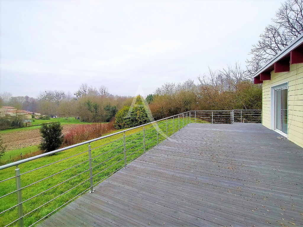 Une nouveauté l'Adresse! Située à 10 minutes du centre ville de Saintes, je vous présente cette belle maison contemporaine de 2005 avec vue dégagée! De plain pied, elle se compose d'une pièce de vie lumineuse de 53 m² avec sa cheminée insert, d'une cuisine indépendante aménagée et équipée de plus de 12 m², de trois chambres dont une suite parentale avec salle de bains, d'une salle d'eau, d'un cellier et d'un garage de 20 m² avec porte automatisée. Sa terrasse de 75 m² avec vue dégagée exposée sud/ouest ne vous laissera pas indifférent! Les + : Terrain piscinable, huisseries double vitrage alu/PVC, volets roulants électrique, chauffage électrique Sol/convecteur, climatisation réversible, insert . Zone non inondable. A visiter sans tarder ! Aurélie FOURNIER (EI) Agent Commercial - Numéro RSAC : 828530592 - SAINTES.