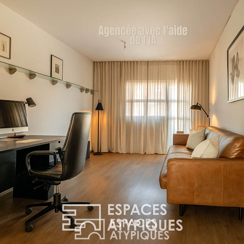 Située sur la commune de Thorigné-Fouillard, à seulement sept minutes en voiture de la station de métro Viasilva et treize minutes en mobilité douce à vélo, cette maison d'architecte de 2003 s'insère harmonieusement dans un environnement privilégié et paisible, bordé de voies vertes. Bâtie sur une parcelle de 488 m², cette propriété développe 161 m² habitables, offrant un cadre de vie particulièrement agréable et sans vis-à-vis. Dès l'entrée, le puits de lumière donne le ton, dévoilant de généreux volumes et une architecture contemporaine originale. En poussant cette grande porte coulissante en bois , vous pénétrez dans une spacieuse pièce de vie de 45 M², prolongée par une large terrasse, propice à des instants de convivialité. En montant quelques marches vous découvrez une grande suite parentale de près de 20 M² offrant un agréable confort, un dressing et une salle d'eau. L'étage dispose de trois autres chambres et d'une salle de bains. Parfaitement agencée pour une vie en famille, chaque espace de la maison présente une atmosphère chaleureuse et fonctionnelle. Au rez-de-jardin, une partie du garage à été transformée en bureau ou chambre avec accès direct au jardin. Les extérieurs paysagés et bordés d'arbres invitent à la détente. L'environnement immédiat de Thorigné-Fouillard propose une vie de quartier dynamique avec écoles, commerces et transports à proximité, conjuguant ainsi sérénité et praticité au quotidien. Cette maison d'architecte située dans un secteur privilégié est une véritable perle rare; un bien immobilier original alliant design et confort CLASSE ENERGIE:B CLASSE CLIMAT:A montant moyen estimé des dépenses annuelles d'énergie pour un usage standard, établi à partir des prix de l'énergie de l'année 2023 entre: 969 euros et 1311 euros Les informations sur les risques auxquels ce bien est exposé sont disponibles sur le site Géorisques: www.georisques.gouv.fr Contact: Tanaig STENFORT Agent commercial RSAC EI 500990197 Tél: 0620436956 Yann MARTIN (EI) Agent Commercial - Numéro RSAC : 751749771 - RENNES.