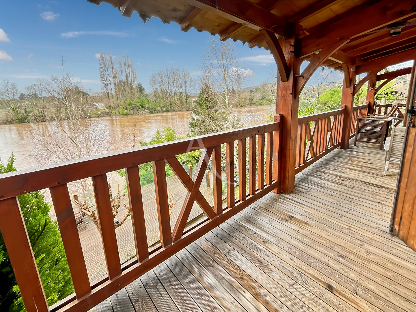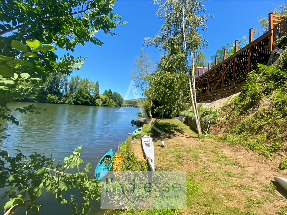 Cette propriété rare et pleine de charme saura vous séduire par son emplacement privilégié en bord de rivière, avec ponton offrant un accès direct et privé à l'eau. Idéale pour un projet familial, une résidence principale avec revenu locatif. La maison principale est construite sur deux niveaux, composée comme suit: Rez-de-jardin: Accès par escalier extérieur ouvrant sur un hall, un séjour (poêle à bois) avec salle à manger accès terrasse, cuisine, arrière cuisine, 3 chambres dont une avec salle de bains ensuite, salle d'eau indépendante, 2 W.C et Cave. Rez-de-chaussée: Entrée, séjour avec cuisine équipée accès balcon, couloir, deux chambres dont une avec balcon, une salle de bains et W.C. Grande Terrasse Un gite indépendant comprenant salon/ salle à manger (poêle à bois) avec cuisine ouverte, chambre avec salle de bains en suite et WC. Piscine hors sol. Terrasses, Sauna et deux garages. Un cadre de vie exceptionnel avec un ponton offrant une vue imprenable et d'un accès direct à la rivière. Parfait pour les amateurs de pêche ou simplement de moments de détente au fil de l'eau. Visite virtuelle sur demande