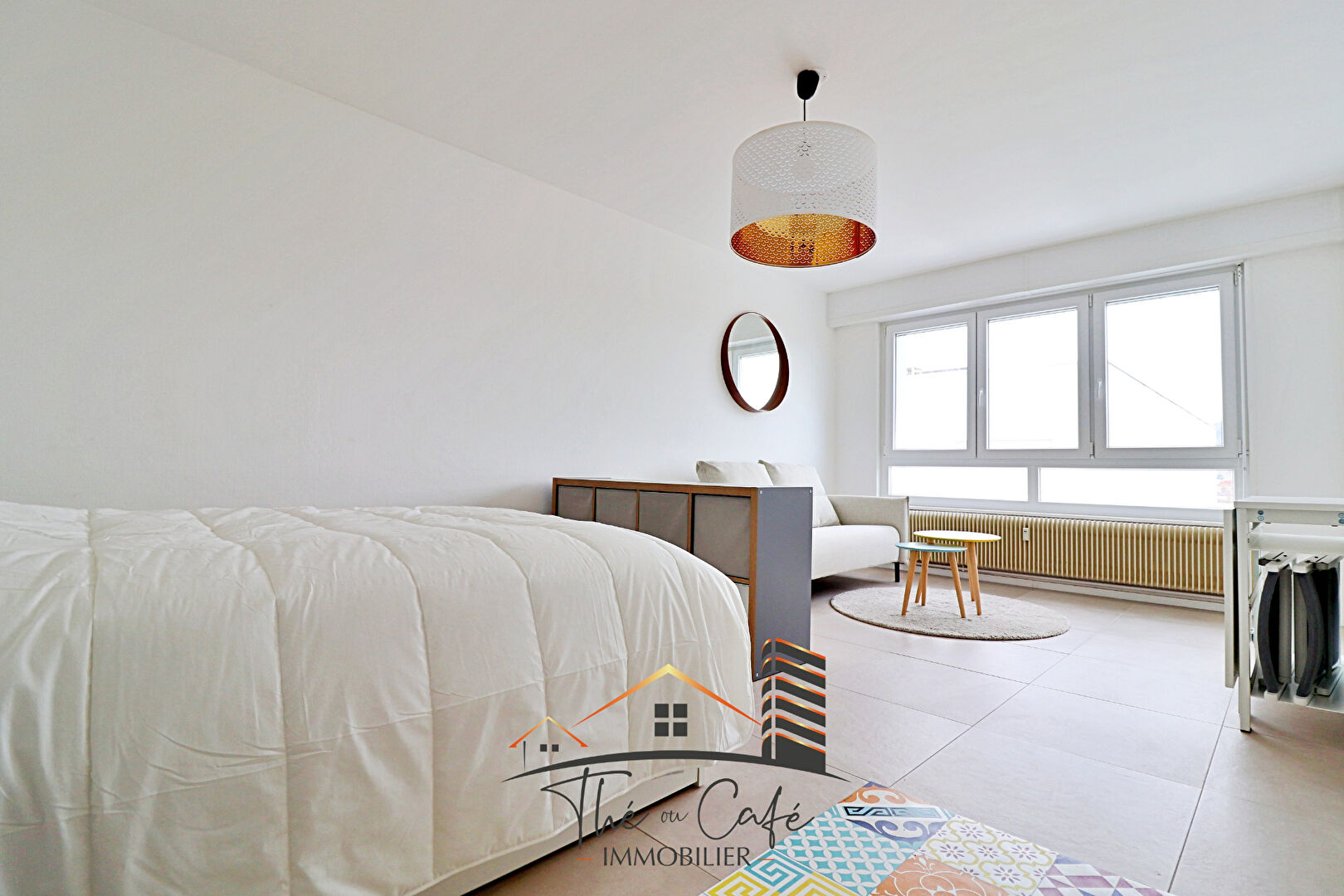 THE OU CAFE VOUS PRESENTE : Vous souhaitez vous installer sur Thionville, dans une location meublée agréable et bien située ? Nous vous proposons ce grand studio meublé de près de 30 m2, situé en dernier étage d'un immeuble de 9 étages, très bien tenu. L'appartement, jouissant d'une vue dégagée et agréable sur la ville, a été entièrement rénové avec goût. Il se compose d'une entrée avec placard aménagé, salle de bains confortable avec baignoire, meuble vasque et machine à laver. Belle et lumineuse pièce principale de 20.10 m2 avec un espace nuit aménagé (lit 140X200) et rangements, et espace séjour avec canapé, table basse et meuble TV. L'appartement est équipé d'une table repliable et de deux chaises. Cuisine parfaitement aménagée et équipée avec tout le confort (frigo, plaque, four, hotte et petit électroménager). Un parking privatif est loué avec. Stationnement facile dans la résidence, façades entièrement isolées permettant d'avoir un bon classement énergétique. Loyer de 600 euros mensuels hors charge. Charges mensuelles de 90 euros/mois comprenant eau froide, eau chaude, chauffage, ascenseur, entretien des communs. Location en bail meublé - 2 mois de caution demandées. Uniquement chez Thé ou Café Immobilier au 03 74 95 10 92 www.theoucafeimmobilier.com Copropriété de 436 lots - dont 174 lots habitation. (Pas de procédure en cours). Charges annuelles : 1620 euros.