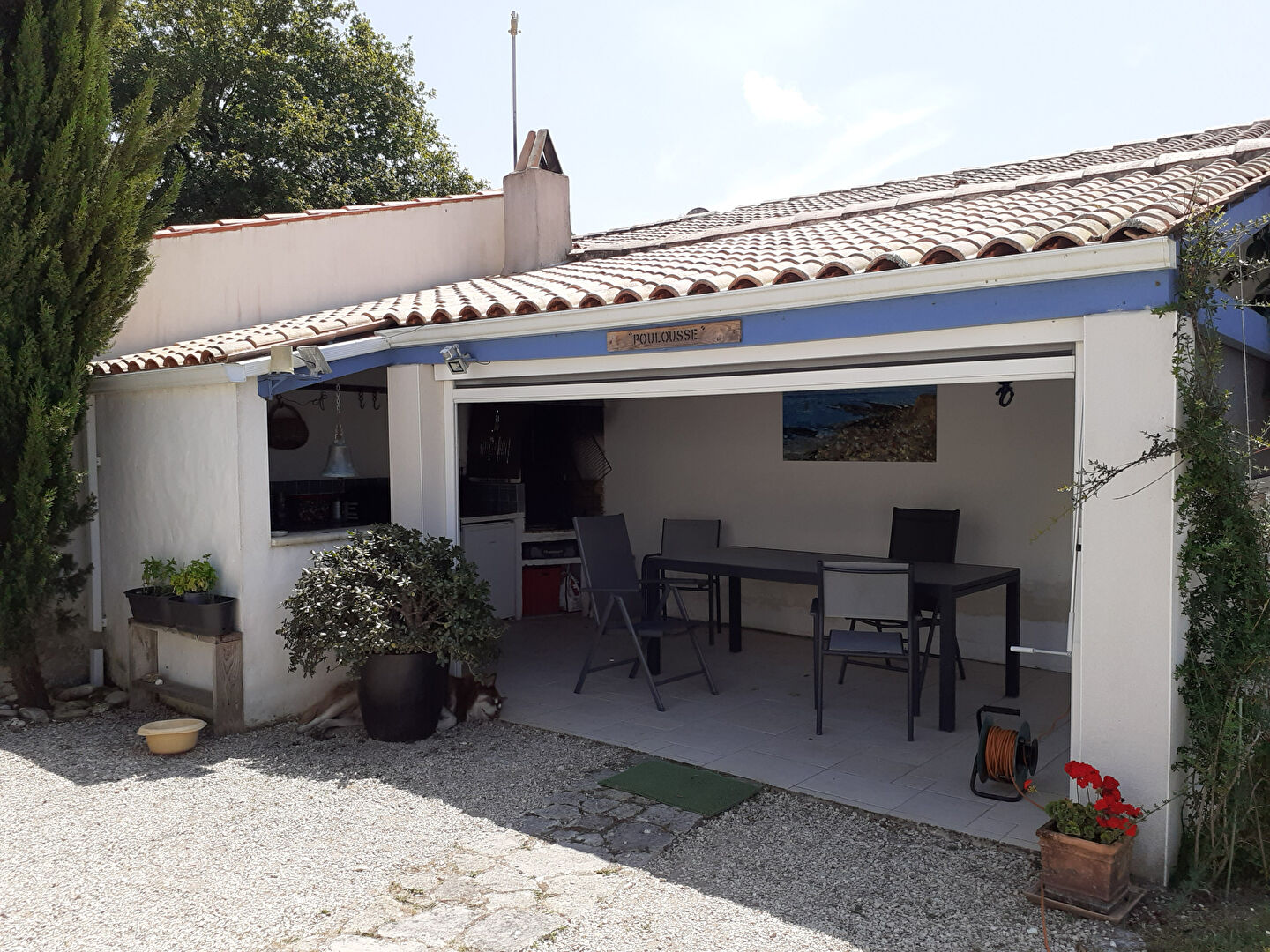 Au calme, dans un environnement naturel (réserve d'oiseaux), à 1,5 km des belles plages, sur un terrain de 865 m² où règne la sérénité, MAISON (1999) d'une surface habitable de 155 m² comprenant un séjour suivi d'une cuisine de 70 m², trois chambres avec placard, un wc, une salle d'eau et une chambre parentale avec salle d'eau et wc - Une buanderie - Chauffage par pompe à chaleur et panneaux solaires - Une piscine avec terrasse et local technique - Une salle à manger sous auvent - Dépendances (4.44 % honoraires TTC à la charge de l'acquéreur.)