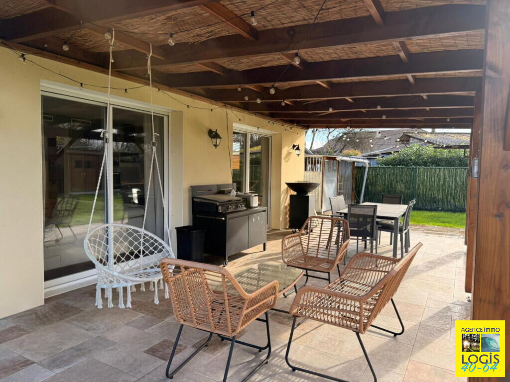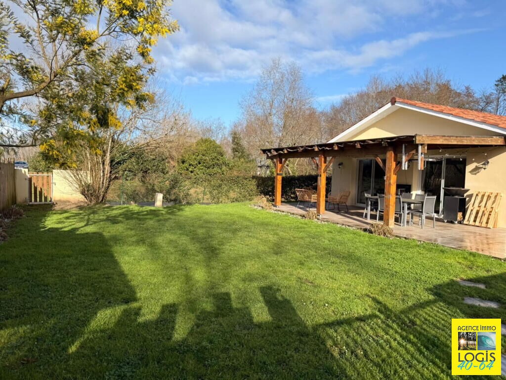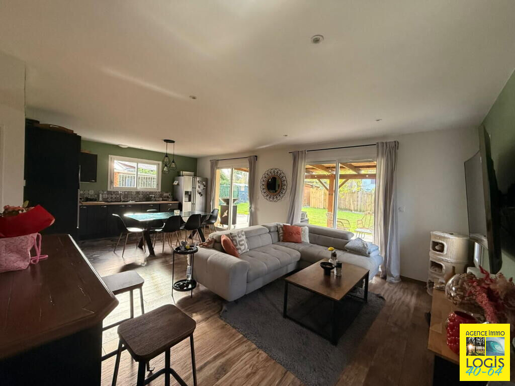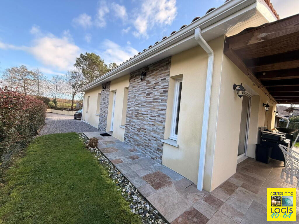 UNE VISITE S'IMPOSE ! 35 min. de BAYONNE, 10 min. de ST-VINCENT-DE-TYROSSE, maison pl-pd sur vide-sanitaire, an 2021, 84m² hab. env., cuis. ouverte sur séjour, buanderie, 3 ch, s. d'eau, wc ind., terrasse couverte, sur 975m² clos. Prestations : PAC Air/Eau, double vitrage, volets, portail électr. Tt à l'égout. (4.83 % honoraires TTC à la charge de l'acquéreur.)