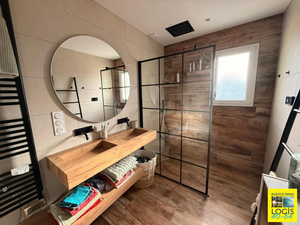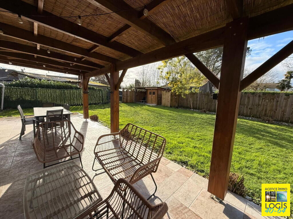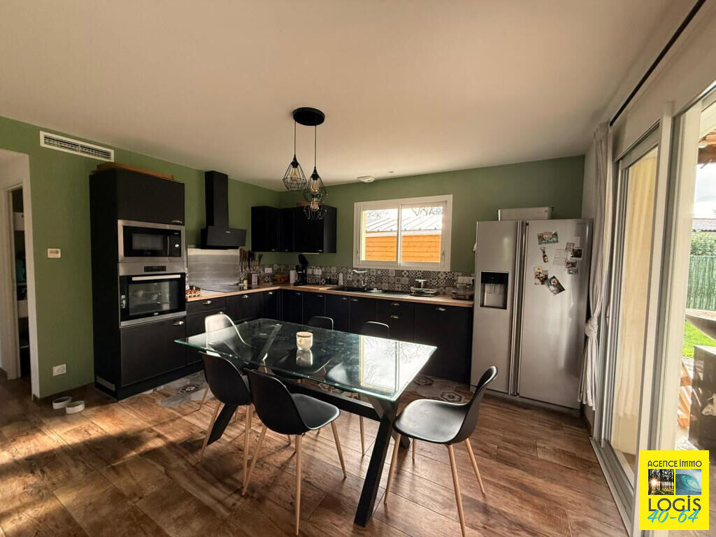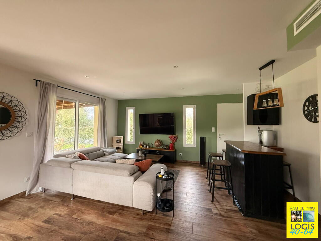 UNE VISITE S'IMPOSE ! 35 min. de BAYONNE, 10 min. de ST-VINCENT-DE-TYROSSE, maison pl-pd sur vide-sanitaire, an 2021, 84m² hab. env., cuis. ouverte sur séjour, buanderie, 3 ch, s. d'eau, wc ind., terrasse couverte, sur 975m² clos. Prestations : PAC Air/Eau, double vitrage, volets, portail électr. Tt à l'égout. (4.83 % honoraires TTC à la charge de l'acquéreur.)