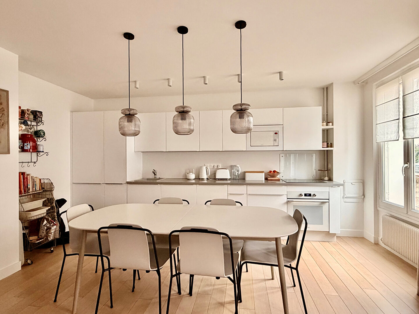 BOIS-COLOMBES quartier Mairie Dans un bel immeuble 1970 en pierre de taille, superbe appartement de 3/4 pièces de 75, 61 m² entièrement refait à neuf, offrant des volumes exceptionnels, l'appartement comprend: une entrée avec rangements sur mesure ouvrant sur un magnifique espace séjour cuisine équipée de 42.39 m², deux chambres, salle d'eau, WC séparés. L'ensemble a été rénové avec soin et des prestations de grande qualité. Possibilité d'achat d'un emplacement de parking en sous-sol plus 20 000 euros. (2.99 % honoraires TTC à la charge de l'acquéreur.) Copropriété de 50 lots - dont 15 lots habitation. (Pas de procédure en cours). Charges annuelles : 3300 euros.