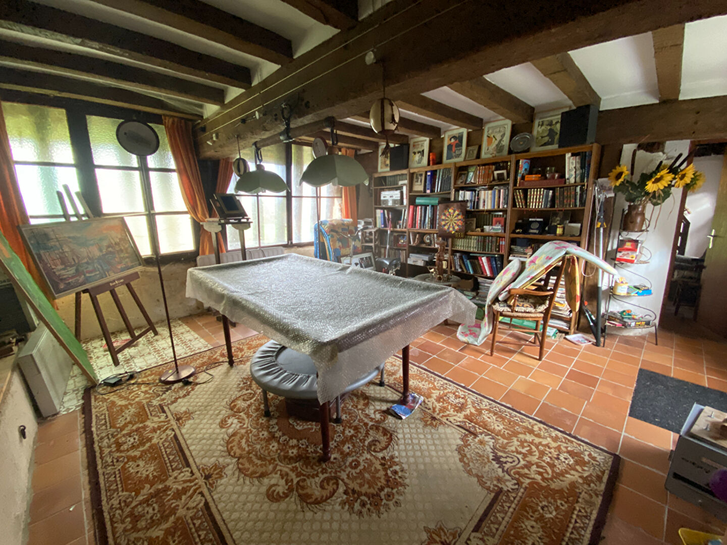 8 km LA FERTE-BERNARD, maison de campagne 4 chambres à restaurer Maison de campagne 170 m² habitables à restaurer comprenant : entrée sur salle à manger avec cheminée ouverte, salon avec cheminée ouverte, cuisine, chambre, dégagement salle d'eau avec wc, 2ème salon, salle d'eau avec wc. A l'étage : palier, trois chambres, bureau. A la suite : atelier. Une dépendance 80m² au sol. Terrain de 10 990 m² situé en bout de chemin, offrant calme et tranquillité. (8.78 % honoraires TTC à la charge de l'acquéreur.)