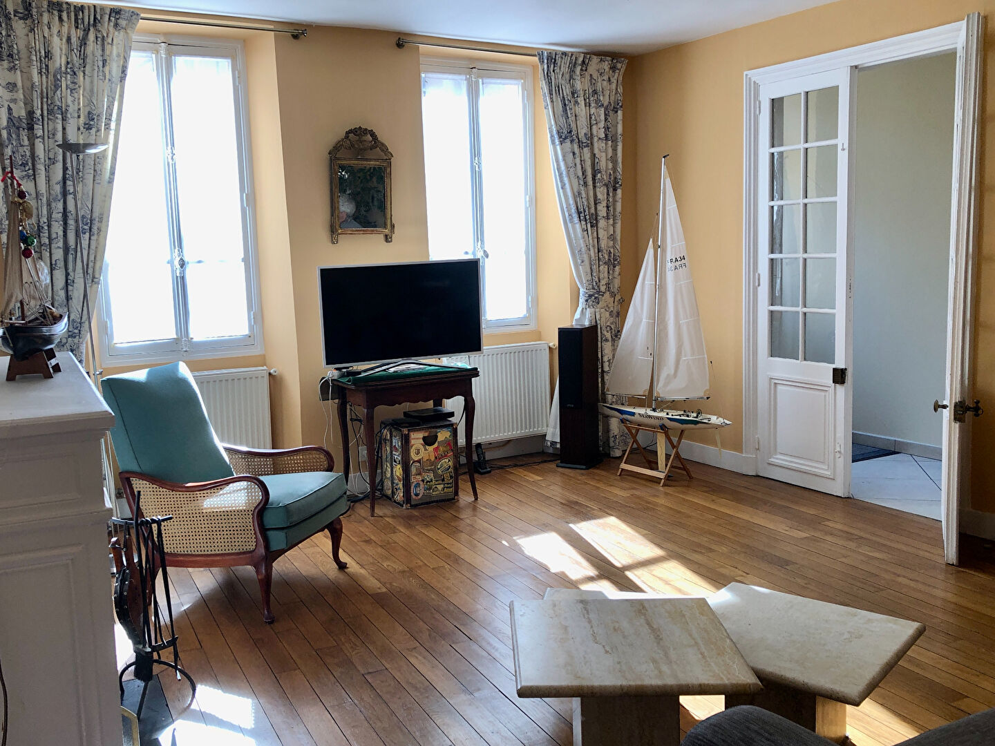 RARE . Idéalement placée à JOUY EN JOSAS, proche centre village, commerces, écoles et gare, dans petite rue calme, maison ancienne de caractère en pierre de taille avec jardin et grange (aménagement possible en garage). On accède par la rue : la porte ouvre sur une entrée qui mène à une chambre parquetée traversante avec son dressing et sa salle de douche, WC avec lave-mains, le couloir dessert le séjour avec une cheminée (foyer ouvert) puis la cuisine indépendante contigüe à la salle à manger les deux accédant à la terrasse avec quelques marches vers le jardin en contrebas ; de la salle à manger monte un bel escalier vers le premier étage offrant deux grandes chambres avec placards et une plus petite, une salle de bains avec WC et un espace buanderie. Les combles ont été aménagés en un grand dégagement (bureau) , une chambre mansardée et une salle de douche avec WC. Le jardin avec des arbres fruitiers est clos. Plusieurs caves sont accessibles par le jardin , une grange et aussi une sortie sur une impasse privative par le côté du jardin avec une place de parking. Cette maison individuelle de caractère est en bon état général : toiture et ravalement refaits en 2025, chauffage gaz. fibre internet ,... et peut accueillir une famille. Le charme de l'ancien en coeur de village. (3.05 % honoraires TTC à la charge de l'acquéreur.)