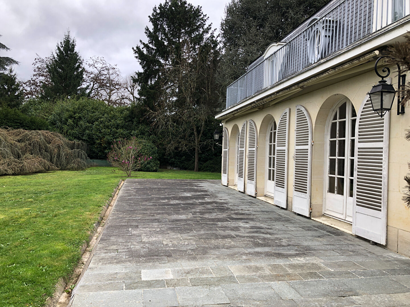 RARE SUR BUC . Noyée dans la verdure et Idéalement située au fond d'une impasse calme proche du chateau de Buc, commerces et écoles, sur un terrain clos de 1617 m² sans vis-à-vis, belle maison Ile de France ( 175m² carrez) sur sous-sol total (plus de 100 m²), rez-de-chaussée et un étage avec balcon filaire en façade de 9 m² . Le grand portail s'ouvre sur l'allée qui mène au garage en sous-sol, et quelques marches montent vers la grande terrasse devant toute la façade sud de la maison et au jardin magnifiquement arboré . L'entrée avec placards se fait par la façade de la maison : elle ouvre sur le séjour avec une première cheminée, puis la salle à manger avec une seconde cheminée (insert) et enfin la suite parentale de plain pied (avec dressing et salle de bains), donnant également sur la terrasse; L'entrée se poursuit par un hall avec l'escalier vers l'étage, puis un WC, la lingerie et la cuisine indépendante avec sa sortie directe sur la partie nord du jardin. L'étage offre trois chambres avec dressings dont deux avec un accès au balcon plein sud , un WC séparé et deux salles d'eau , et se termine par une partie grenier en pignon ouest de la maison. Le jardin est magnifiquement arboré pour bénéficier du soleil et de larges zones d'ombre. Une deuxième entrée existe par un chemin privé depuis la rue Louis Massotte plus proche du Château .Belle demeure de qualité (pierre de taille, toiture ardoises agrafées à la main, marbre au sol, etc .... à s'approprier, idéale pour une famille désireuse de s'installer durablement sur BUC à l'abri des regards et au calme. (2.40 % honoraires TTC à la charge de l'acquéreur.)