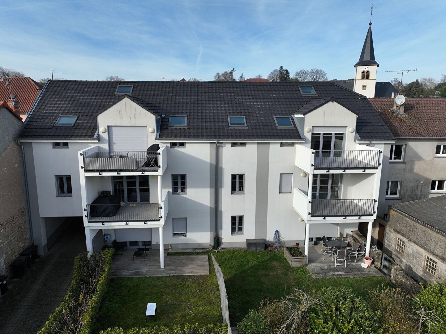 Situé à Kirsch-lès-Sierck, dans un environnement calme et verdoyant, ce bel appartement en duplex prend place au deuxième et dernier étage d'une résidence récente datant de 2010, au sein d'une petite copropriété de seulement six logements. D'une surface habitable de 94 m² pour 110 m² au sol, l'appartement séduit par ses volumes généreux et son cachet apporté par une architecture légèrement mansardée. L'entrée s'ouvre sur un vaste espace de vie de 62 m², comprenant un salon-séjour lumineux avec cuisine ouverte entièrement équipée. Une large porte-fenêtre donne accès à une terrasse de 11 m², offrant une vue dégagée sur la nature environnante, sans aucun vis-à-vis. L'espace nuit se compose de deux chambres, d'un espace bureau, d'une salle de bain complète équipée à la fois d'une baignoire et d'une douche, ainsi que d'un vaste cellier très fonctionnel. En complément, une mezzanine accessible par un escalier en colimaçon apporte un véritable cachet à l'ensemble et peut accueillir une salle de jeux, un coin détente ou un espace lecture. Le logement a fait l'objet d'une rénovation complète en 2010 et bénéficie de belles prestations, dont un chauffage électrique par le sol assurant confort et diffusion homogène de la chaleur. En annexes et en extérieur, vous profiterez d'un garage privatif avec porte motorisée ainsi que d'une place de stationnement. Syndic professionnel FONCIA Un appartement atypique, lumineux et au calme, idéal pour les amateurs de volumes et de tranquillité, à proximité de Sierck-les-Bains et des axes frontaliers. A SAISIR ! Les informations sur les risques auxquels ce bien est exposé sont disponibles sur le site Géorisques : www.georisques.gouv.fr Copropriété de 6 lots - dont 6 lots habitation. Charges annuelles : 1260 euros.
