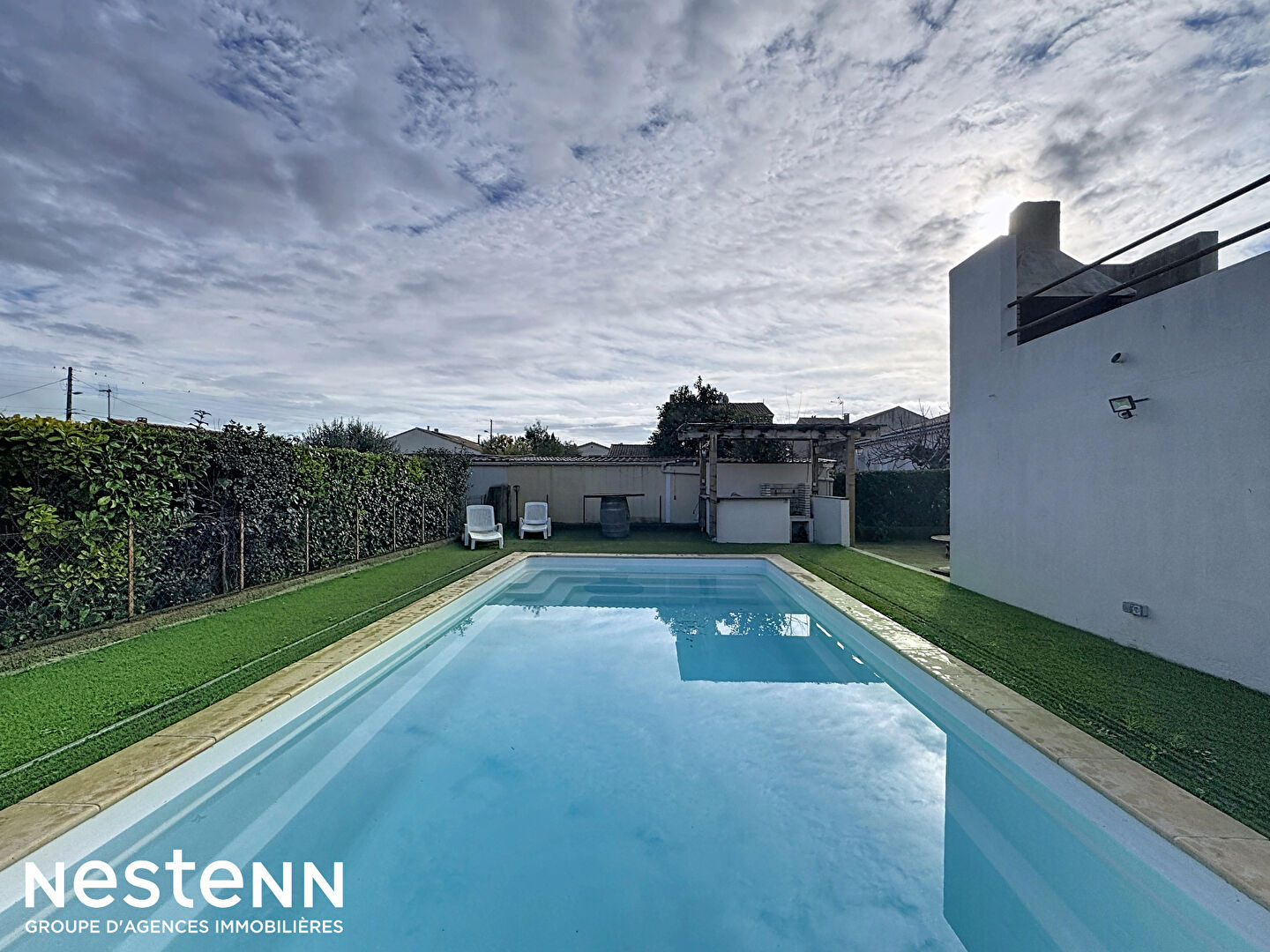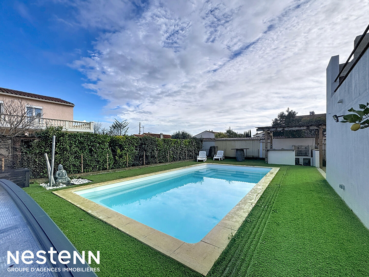 Maison familiale avec appartement indépendant, piscine et espaces de vie multiples A Argeliers, dans un environnement calme et agréable, découvrez cette maison des années 1970 de 149 m², bâtie sur deux niveaux, offrant de nombreuses possibilités d'aménagement et un cadre de vie idéal sur une parcelle de 580 m². Dès l'entrée, le rez-de-chaussée séduit par sa polyvalence. Vous y trouverez un garage de 22 m², mais aussi un appartement indépendant d'environ 40 m², parfait pour accueillir famille, amis ou envisager un projet locatif. Celui-ci se compose d'une cuisine séparée, d'une salle d'eau avec WC et de deux chambres, dont une pouvant faire office de séjour. Toujours sur ce niveau, hors appartement, la maison propose également une salle de bain avec WC ainsi qu'un salon de 22 m², idéal en salle de jeux, espace détente ou bureau selon vos besoins. A l'étage, place à la partie de vie principale. Une cuisine ouverte sur le séjour/salon d'environ 23 m² offre une atmosphère conviviale et lumineuse, avec une vue directe sur une véranda type balcon, parfaite pour en profiter toute l'année. Ce niveau comprend aussi une salle d'eau avec WC et deux chambres de 12 m² et 10 m². Depuis cette partie, vous accédez à une seconde véranda, ouvrant sur une terrasse en hauteur équipée d'un barbecue, idéale pour les repas en extérieur. A l'extérieur, le jardin est un véritable atout : Piscine 4 x 8 m avec abri bas, Cuisine d'été avec barbecue, parfaite pour les beaux jours, Grande terrasse d'environ 56 m², Abri de jardin pour le rangement. Les + du bien : Appartement indépendant Espaces modulables selon les projets Piscine et extérieurs soignés Maison idéale pour une famille, une résidence secondaire ou un projet locatif Un bien rare sur le secteur d'Argeliers, offrant confort, potentiel et qualité de vie. Contactez moi pour plus d'informations ou pour organiser une visite. Clara Pintureau-Debelle Conseillère immobilier 07 72 66 94 01 clara.pintureau-debelle@nestenn.com