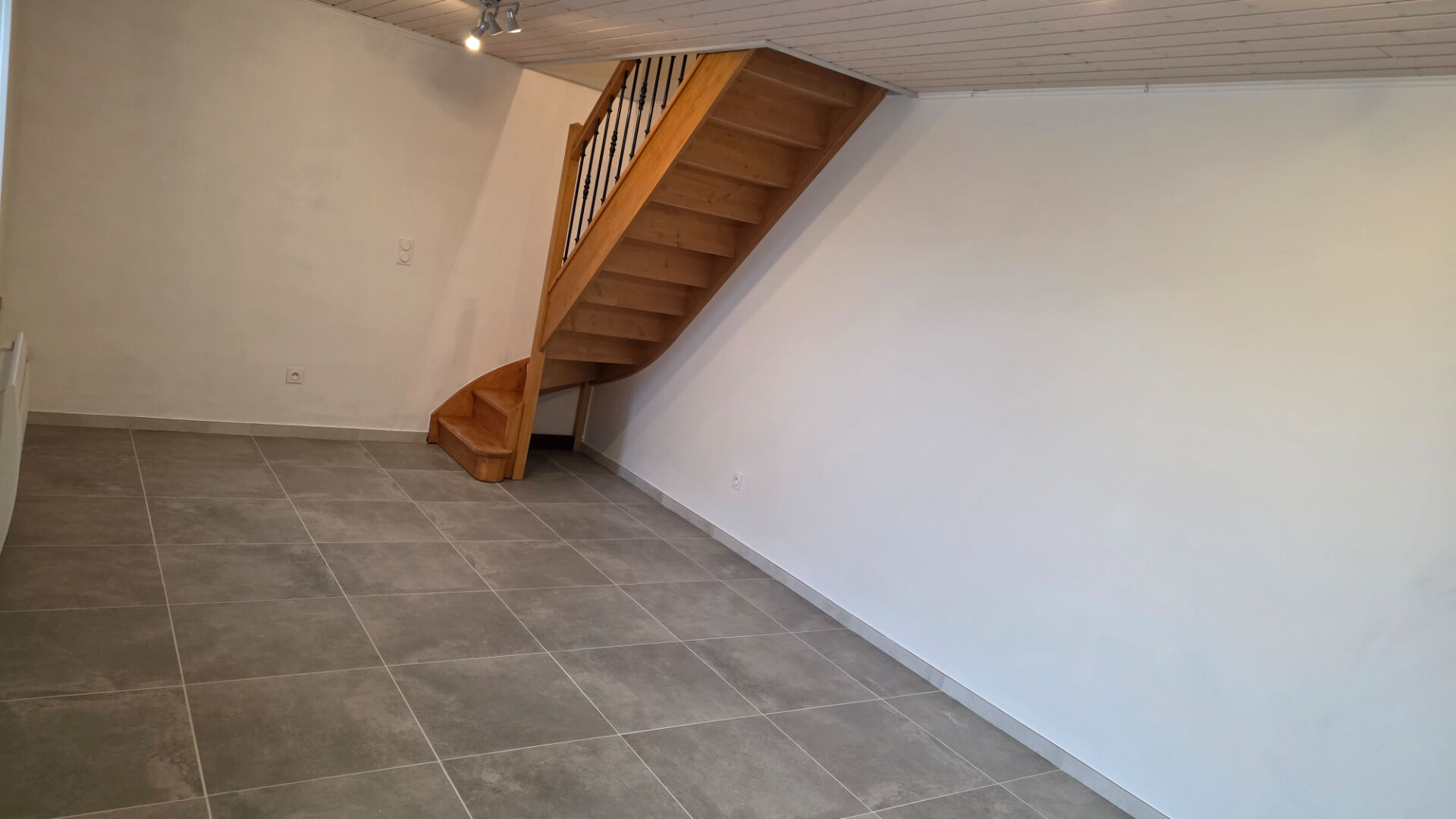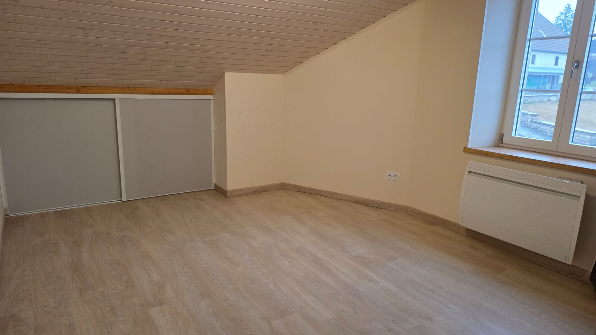 Boujailles, rue de la Salle des Fêtes, un appartement de type F3 en rez-de-chaussée comprenant : une cuisine ouverte sur séjour, deux chambres dont une avec placards, une salle d'eau avec douche, un WC, une cave, un local à usage commun pour vélos et poussettes et accès au jardin, une terrasse privative, un jardin à usage commun, une place de parking et une annexe de 22 m2. Appartement sur deux niveaux. Chauffage individuel électrique. Disponible de suite.