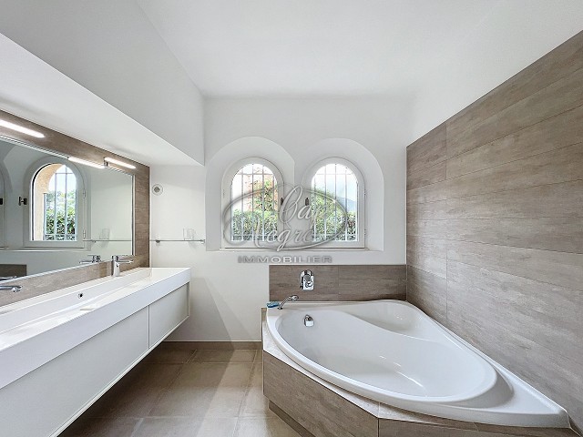 SAINT-CLAIR Belle maison d'architecte vue mer avec garage et piscine. Elle comprend une entrée, un salon avec cheminée, une salle à manger, une cuisine séparée, un bureau avec dressing, une salle d'eau, sdb avec dble vasque, une chambre avec balcon . Au niveau inférieur, vous trouverez une salle d'eau, deux chambres avec placards, un local technique, un vide sanitaire, une chambre cabine avec lits superposés, un rangement sous escalier, un accès au garage, et une chambre. La piscine de 10x4 m avec nage à contre-courant. Quartier calme, bel environnement. Proche du Lavandou à pied. Belles prestations, bcp de charme. Jardin parfaitement entretenu. 1 890 000 euros. Classe énergie : C . (4.97 % honoraires TTC à la charge de l'acquéreur.)