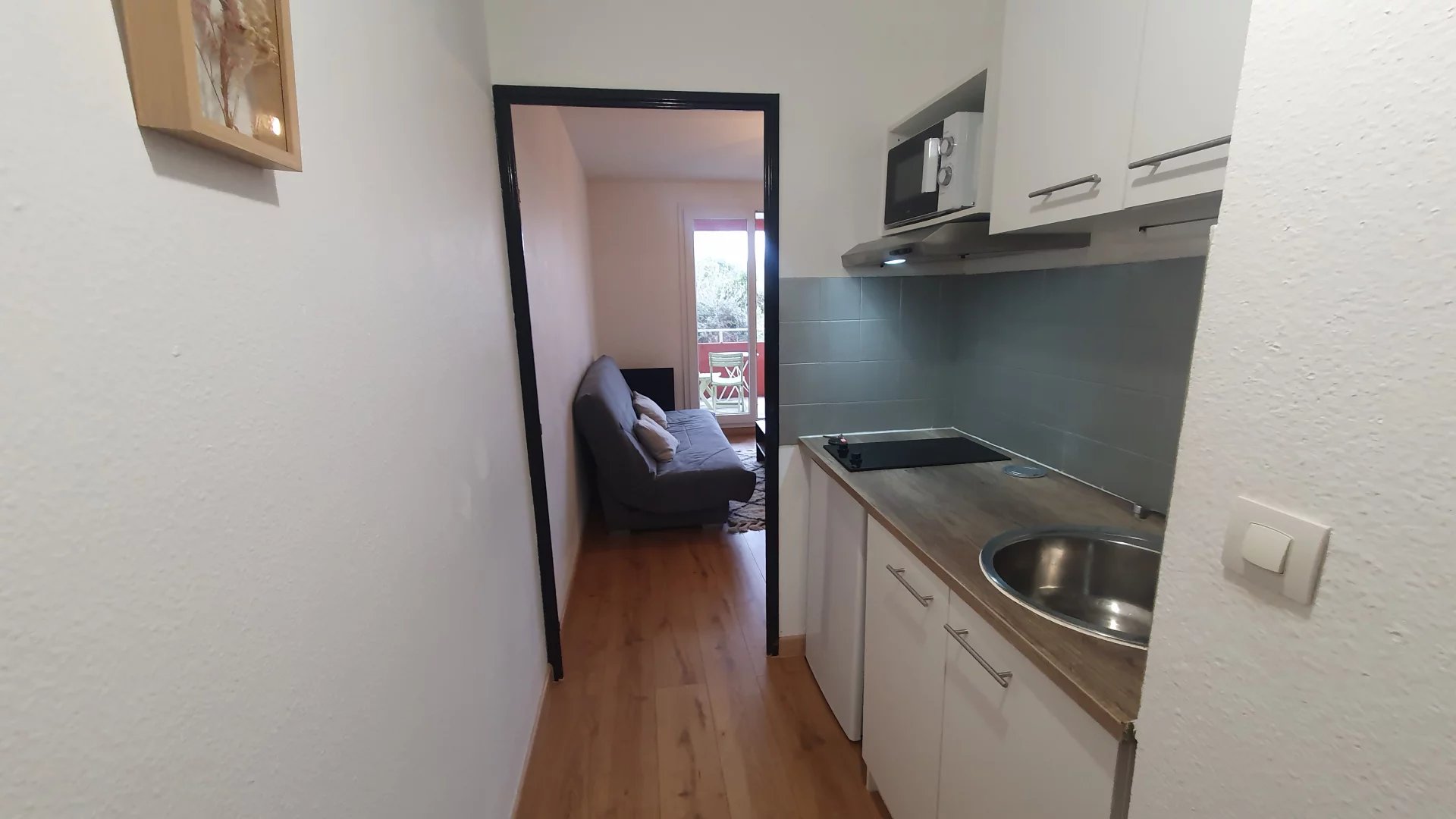Résidence sécurisée proche Canal de la Robine : joli studio au 1 er étage avec balcon de 6,81 m2 expo Ouest et parking privatif et ascenseur. Excellent état. Idéal investisseur : précédemment loué 400 euros/mois CC. Copro bien entretenue de 125 lots. Charges mensuelles 30 €. Taxe foncière 660 euros. Réf.: LC 1086. Honoraires charge vendeur. Orphéa LC Immobilier Narbonne 0468320320 choix 1