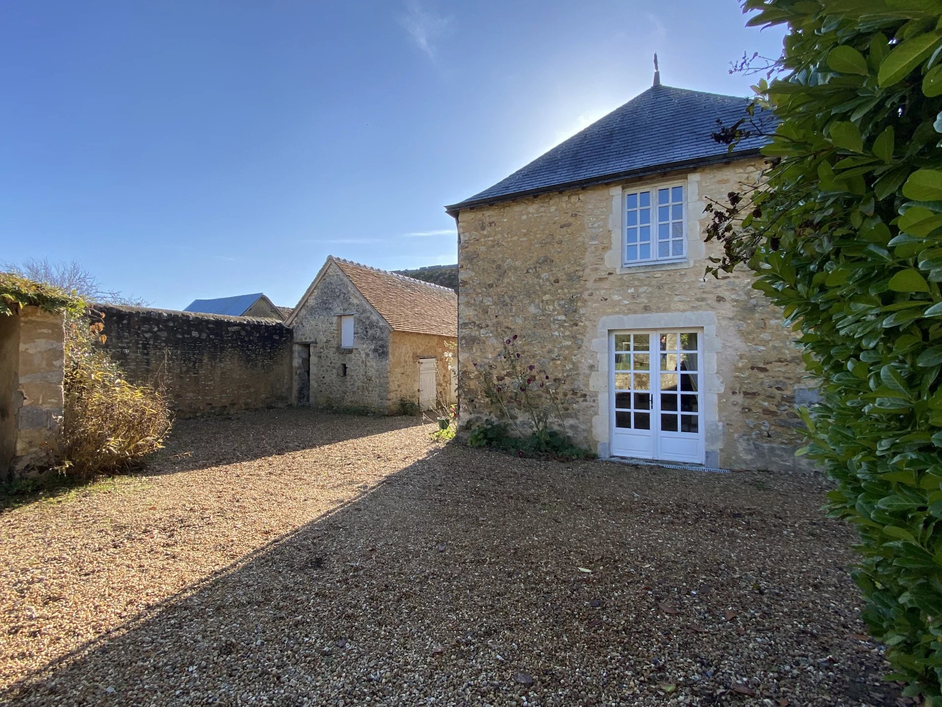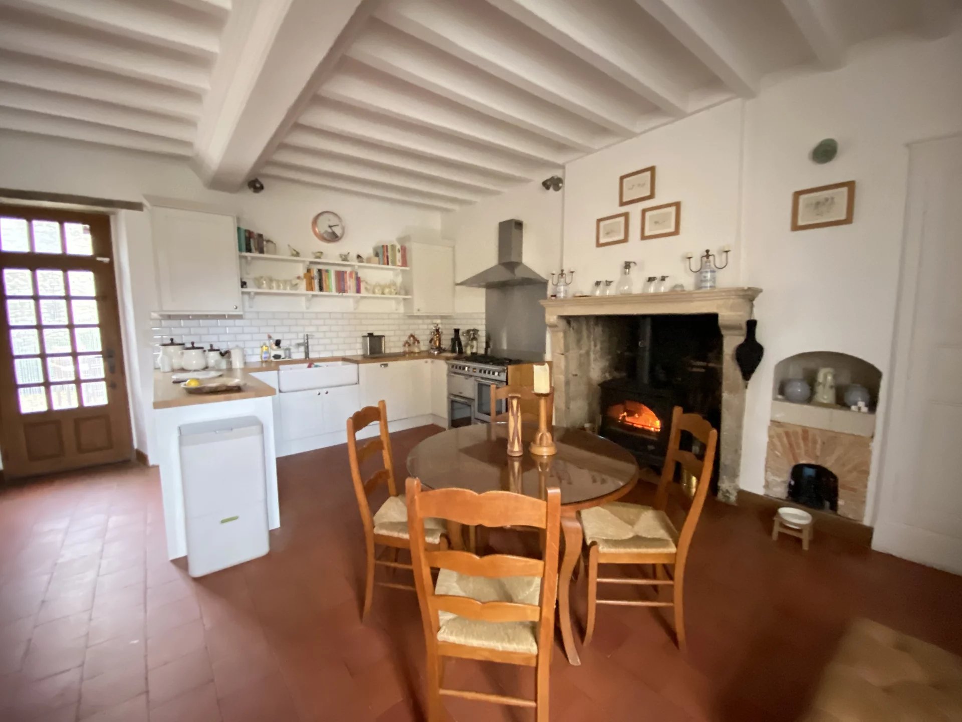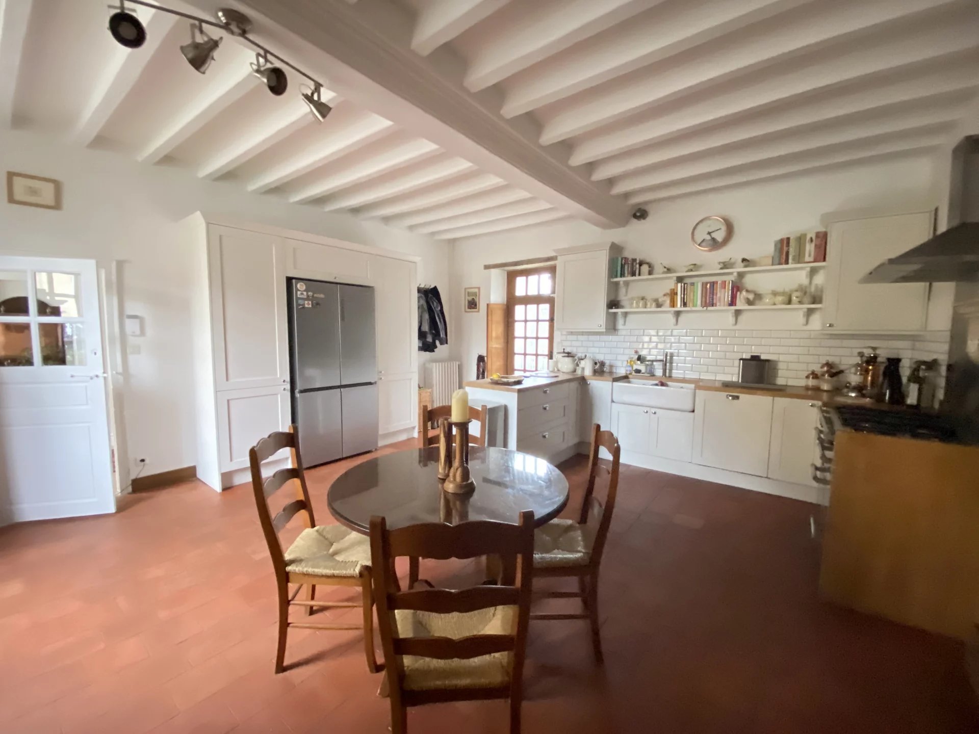 A seulement 15 minutes en voiture de Sablé-sur-Sarthe (gare TGV) et 40 minutes du Mans (gare TGV), dans un village calme et agréable, très belle maison datant du XVIII ème totalement et récemment (en 2022) restaurée avec goût et matériaux de qualité offrant sur 163 m² et deux niveaux: au rez-de-chaussée, une belle entrée desservant une grande cuisine dînatoire et équipée avec une cheminé et accès à une terrasse, une salle à manger, un grand salon avec cheminée et accès au jardin, à l'étage, un palier distribuant deux chambres, une salle de bains avec wc, un bureau-bibliothèque ou chambre, une suite avec salle d'eau et wc.