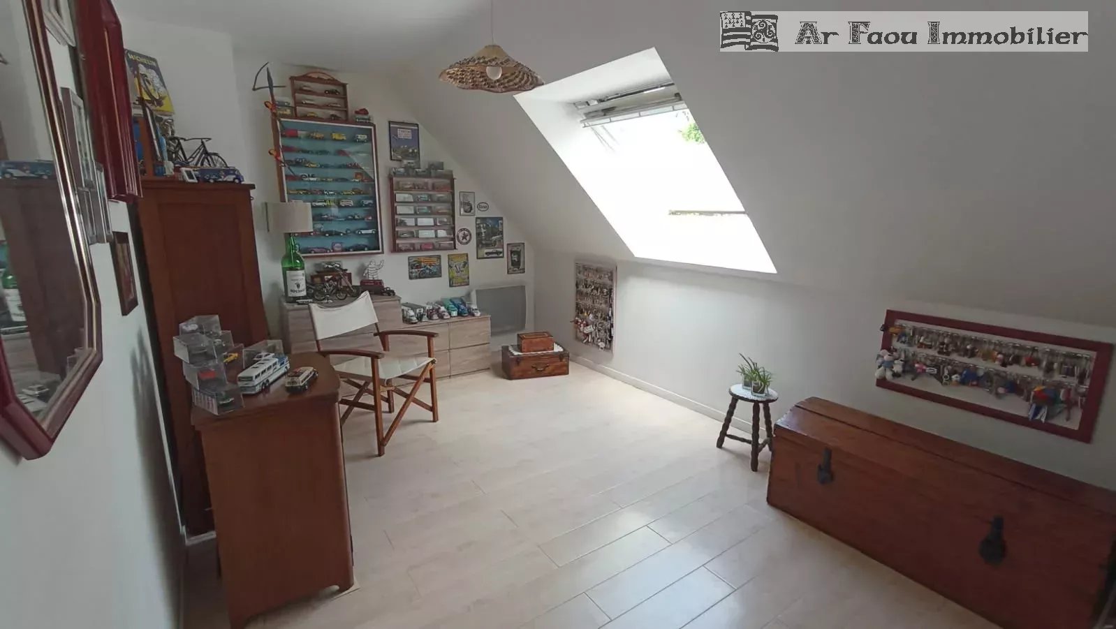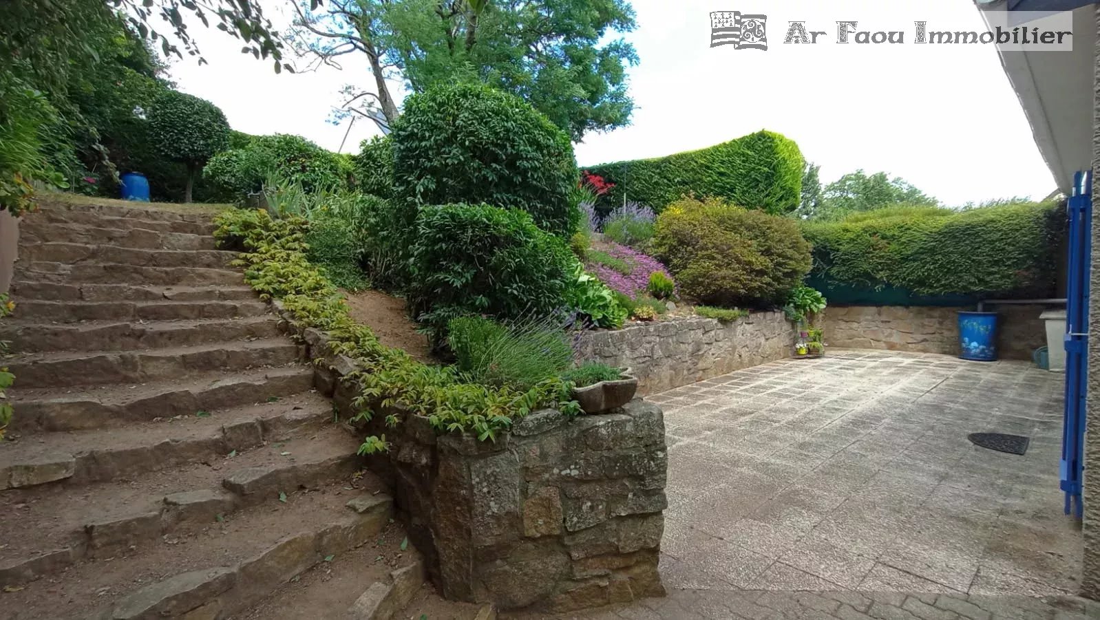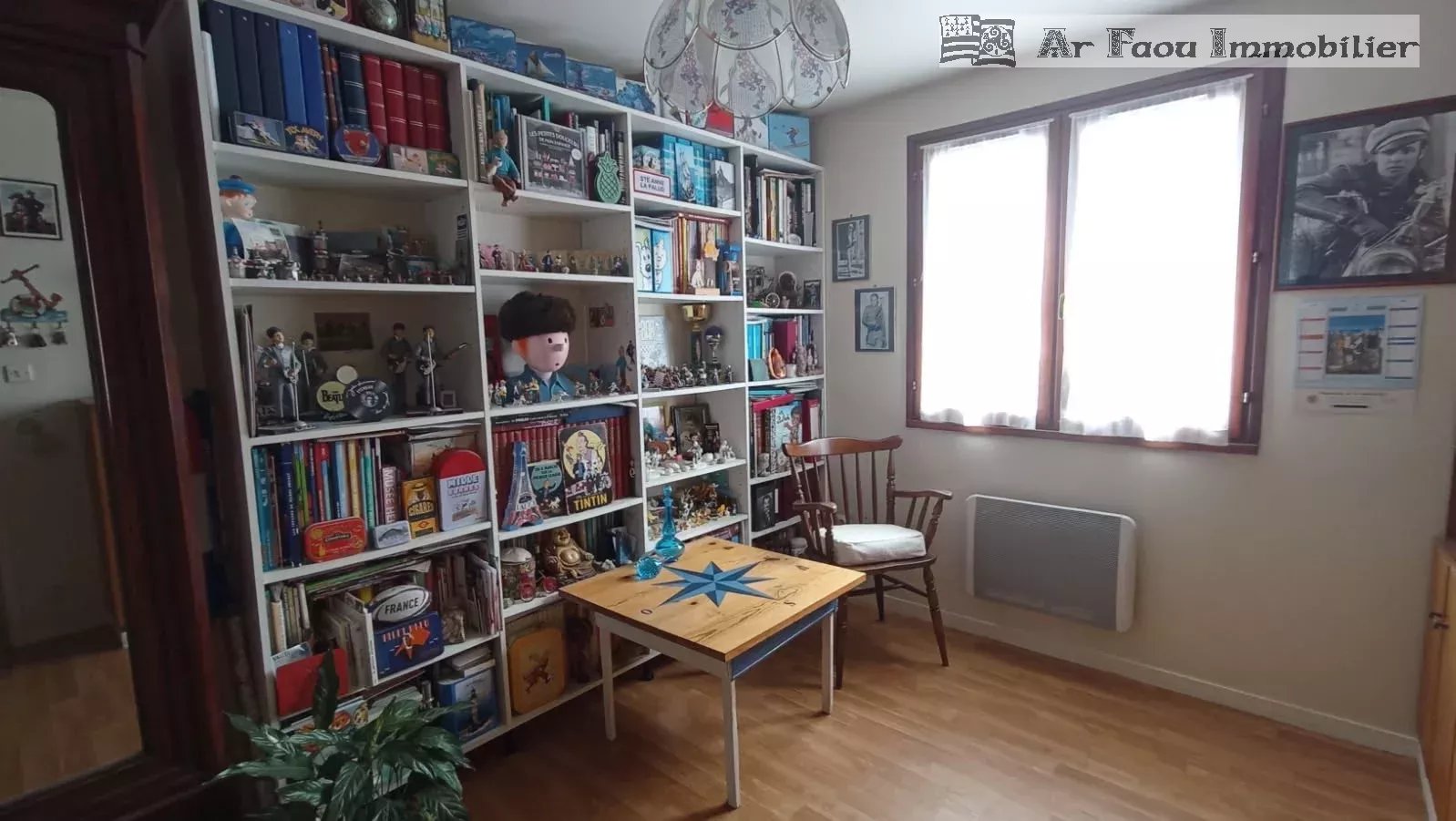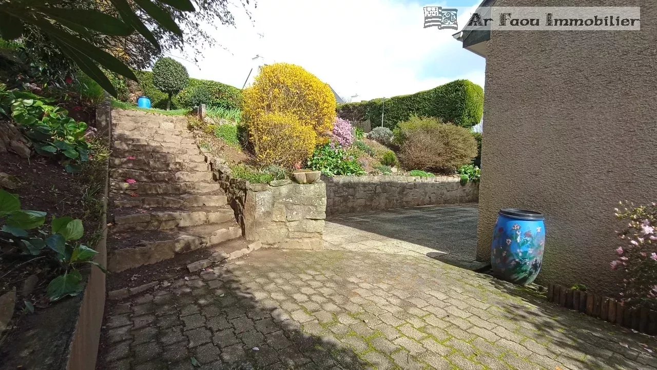 Quimper, secteur Quartier Cuzon, à 3 minutes des commerces et 8 minutes du centre historique, découvrez cette belle néobretonne élevée sur sous-sol complet. Elle propose une entrée, un séjour salon donnant sur terrasse, une cuisine aménagée ouverte sur la salle à manger, une chambre, wc ; à l'étage un palier dessert trois chambres, une salle de bains, wc. Le sous-sol propose un vaste garage et un atelier. Située au fond d'une impasse cette maison bénéficie d'un cadre verdoyant au calme. Très bien entretenue et bien située, cette maison n'attend que vous. A découvrir rapidement.