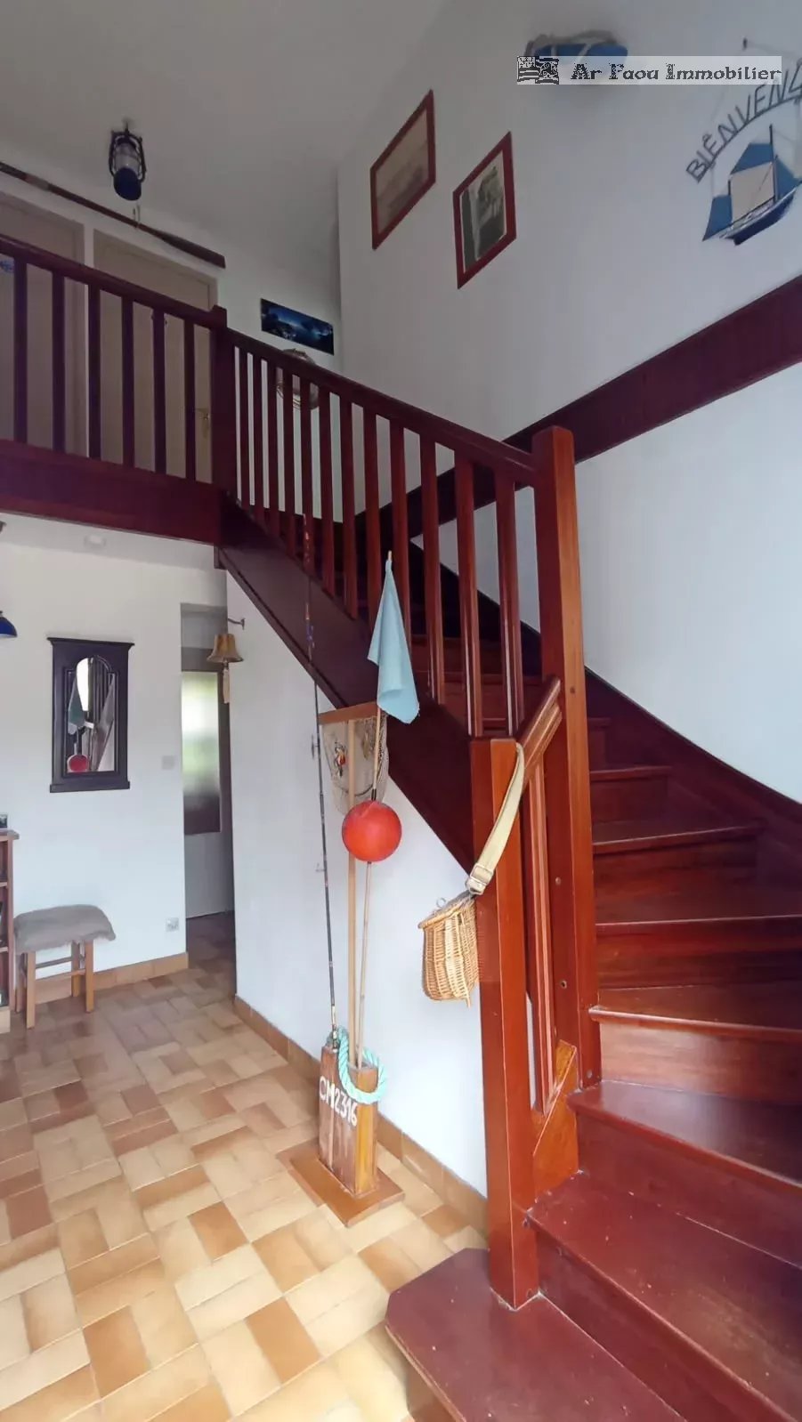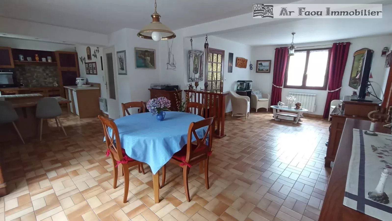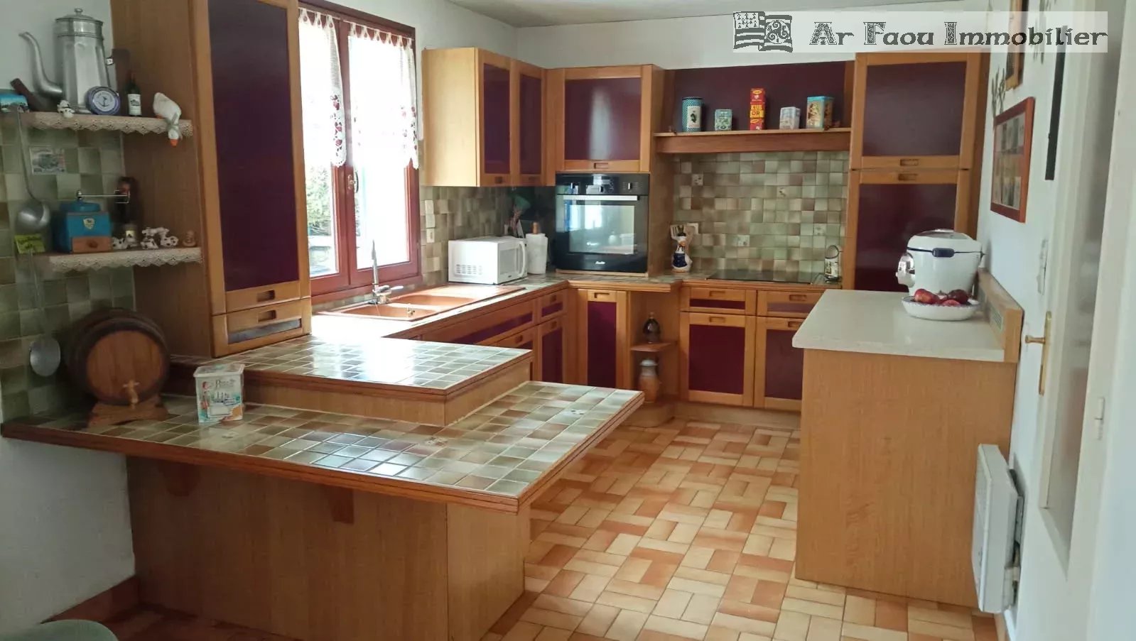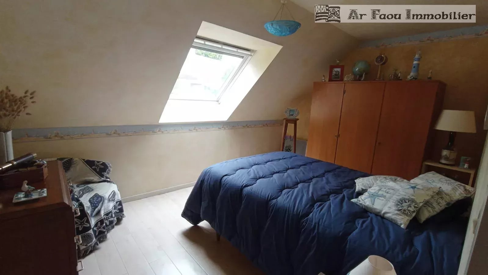 Quimper, secteur Quartier Cuzon, à 3 minutes des commerces et 8 minutes du centre historique, découvrez cette belle néobretonne élevée sur sous-sol complet. Elle propose une entrée, un séjour salon donnant sur terrasse, une cuisine aménagée ouverte sur la salle à manger, une chambre, wc ; à l'étage un palier dessert trois chambres, une salle de bains, wc. Le sous-sol propose un vaste garage et un atelier. Située au fond d'une impasse cette maison bénéficie d'un cadre verdoyant au calme. Très bien entretenue et bien située, cette maison n'attend que vous. A découvrir rapidement.