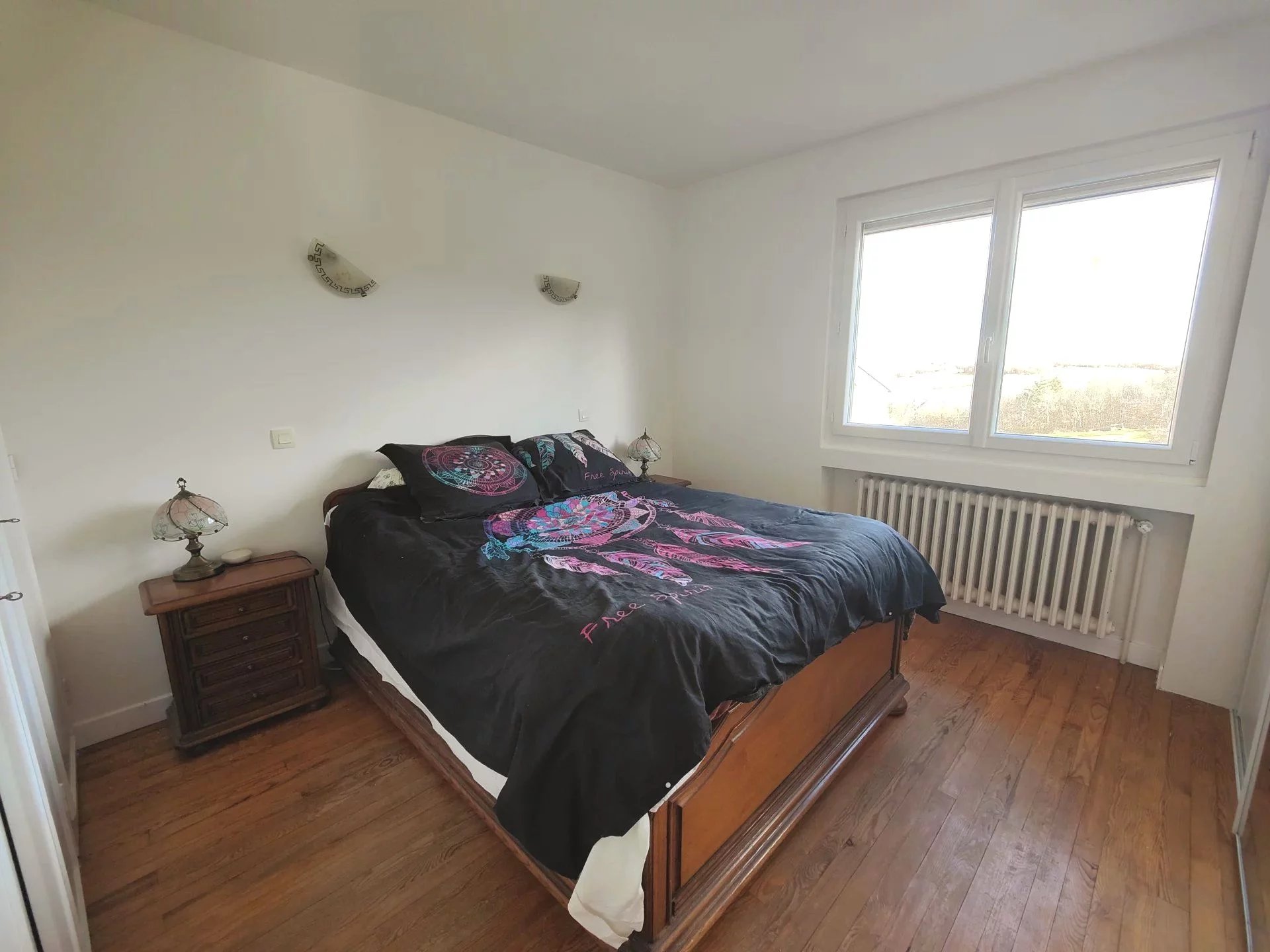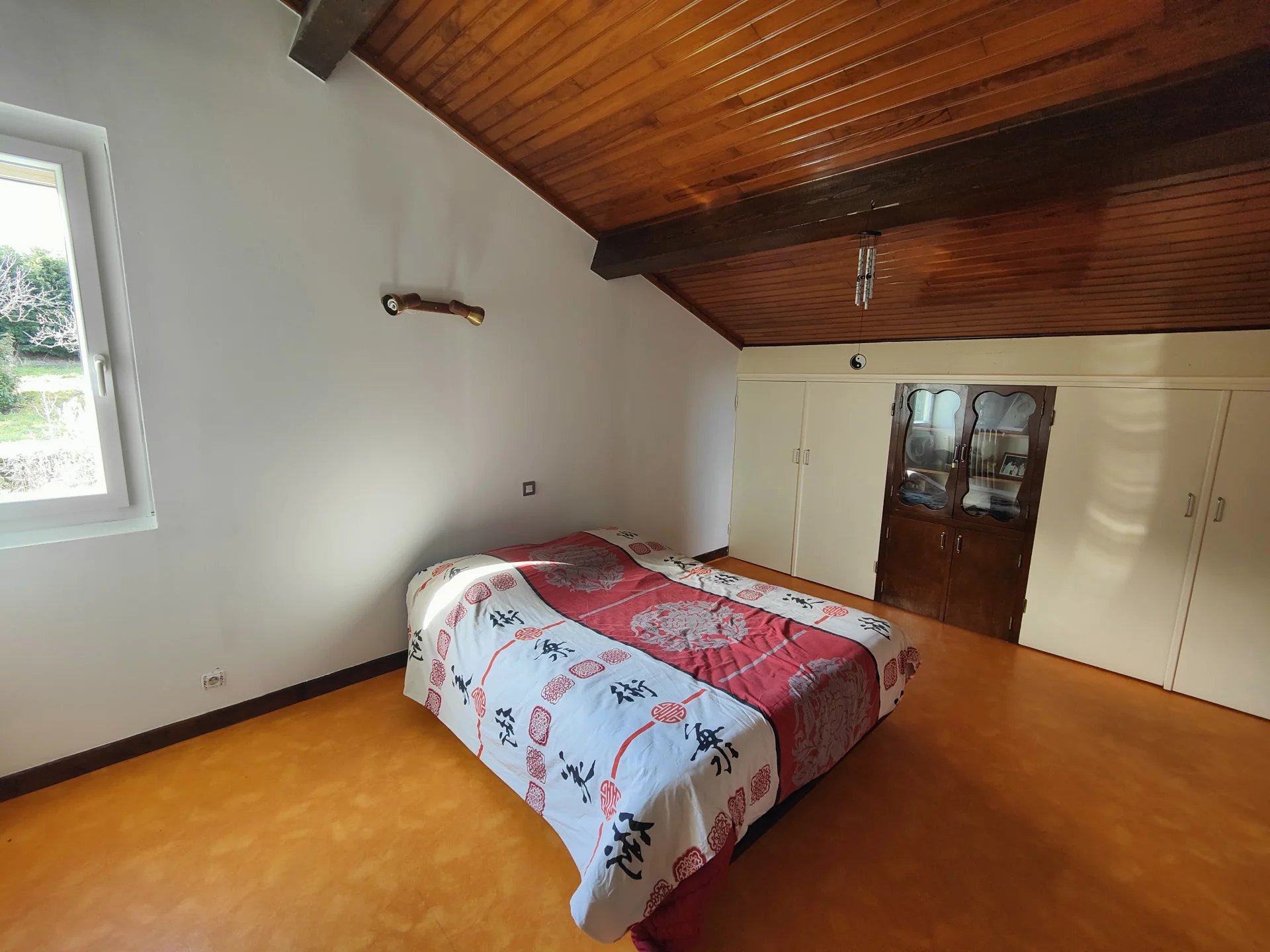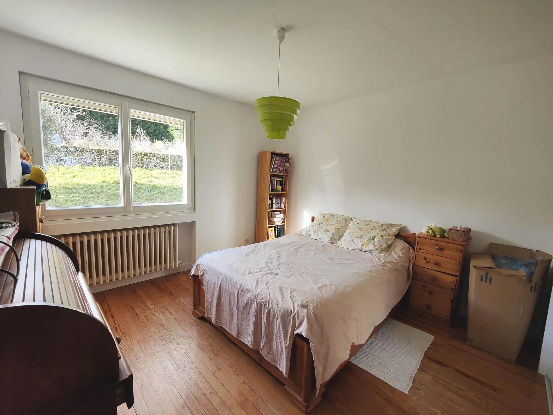 Cette habitation comprend une cuisine équipée, un séjour, 5 chambres et une grande mezzanine le tout élevé sur 85 m² de dépendances dont un garage de 57 m². Les pièces de vie s'ouvrent sur une vue très dégagée sur les Alpes et la campagne environnante.
