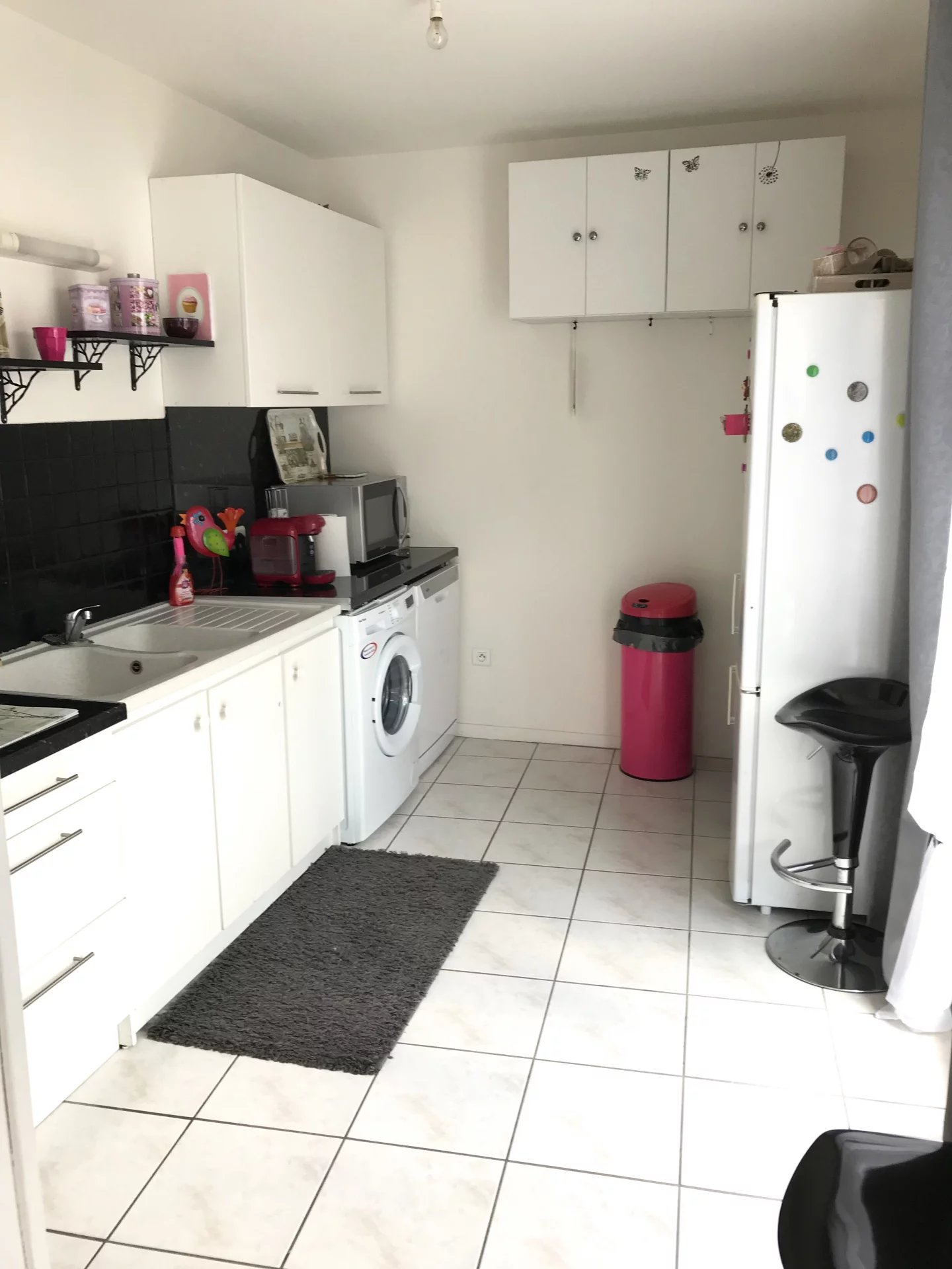 - 1 cuisine équipée de meubles, d'une plaque électrique avec hotte et un réfrigérateur (non remplacé en cas de casse ou de panne)