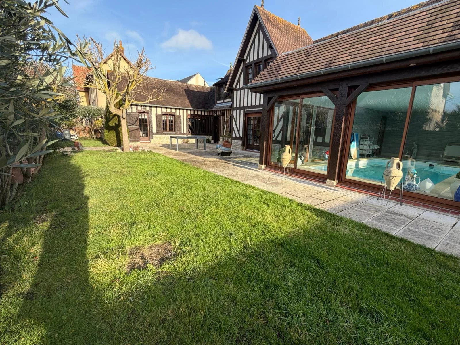 En hyper-centre, avec la plage et la gare à pied, magnifique propriété de style Normand d’environ 200m2, comprenant au rez de chaussée, une entrée indépendante distribuant une belle pièce de vie avec salon - salle à manger et cheminée, une cuisine aménagée et équipée, un bureau, une pièce dressing avec un coin buanderie, un couloir distribuant une suite parentale avec une salle de douche et accès terrasse, wc, une salle de douche pratique pour la piscine intérieure, à l’étage, un couloir distribuant trois chambres dont une avec un coin dressing et rangement (accès combles) et une salle de douche avec wc. L’ensemble sur une parcelle plate de 455m2 avec stationnement possible, portail électrique et portillon et avec une pièce indépendante de rangement. FAIRE VITE...