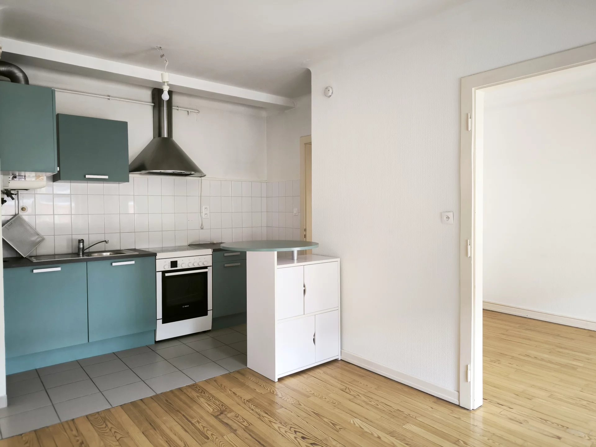 L`appartement comprend 1 entrée avec placard , 1 espace cuisine semi équipée donnant sur séjour ,1 très grande chambre ,1 salle de bain avec baignoire , 1 WC indépendant , 1 cave commune.