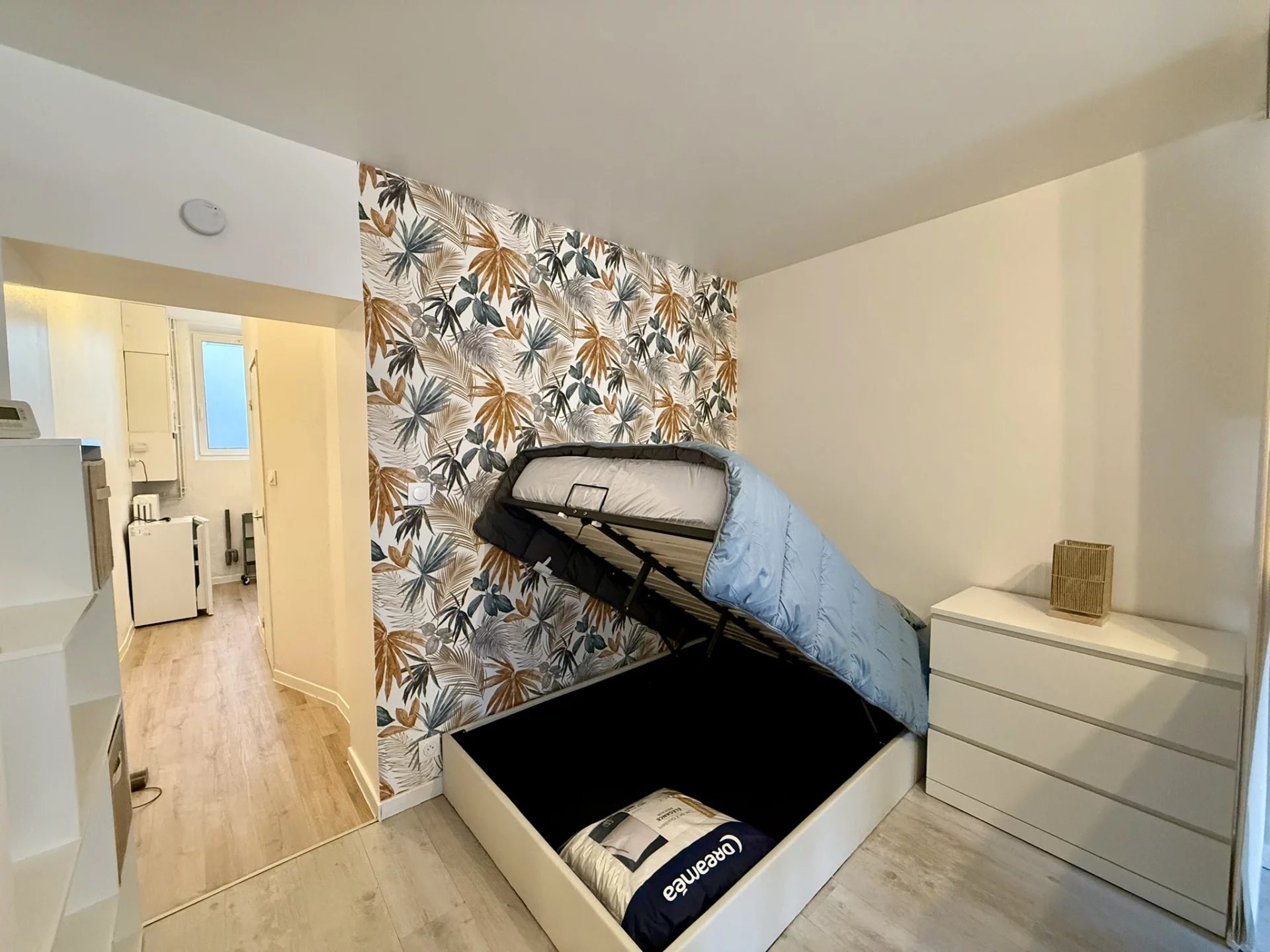 Studio entièrement rénové en janvier 2026 avec matériaux et mobilier de qualité. Appartement traversant offrant une excellente luminosité naturelle.