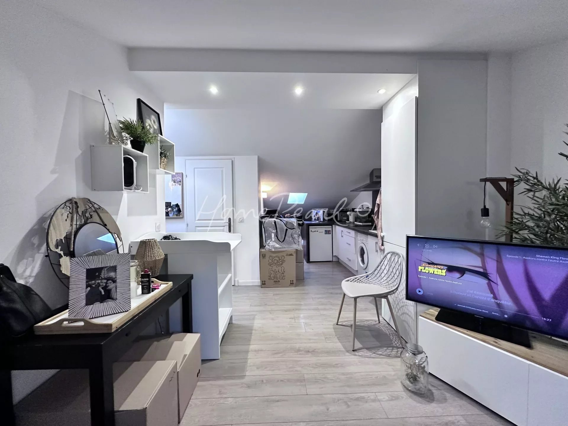 DEMANDE DE VISITE UNIQUEMENT EN REPONDANT A L'ANNONCE - Quartier Lepante - Place Toselli - Au 5ème et dernier étage avec ascenseur d'un bel immeuble bourgeois récemment rénové, petit deux pièces mansardé de 26 m² Loi Boutin et 44 m² au sol comprenant un séjour, une chambre, une cuisine ouverte et une salle de douches avec WC. Le tout en parfait état et au calme absolu. Climatisation.
