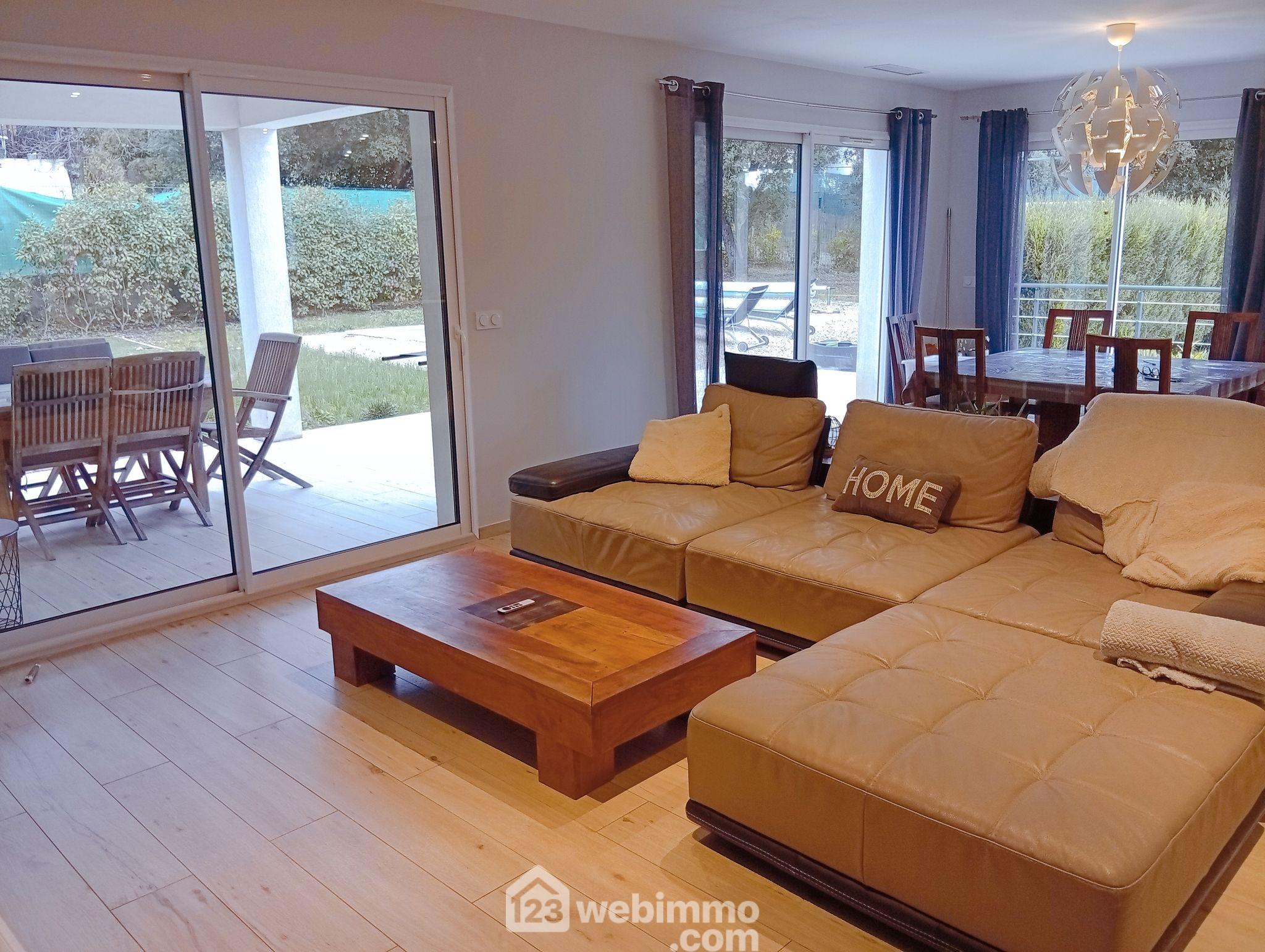 Votre agence 123webimmo vous présente : LE THORONET ? Villa familiale récente, moderne et lumineuse, PRETE A HABITER ! Située dans un secteur pavillonnaire recherché du Thoronet, cette villa récente de plain-pied d'environ 126 m² est destinée à tous ceux qui souhaitent s'installer dans une villa offrant modernité, confort et agencement fonctionnel. Les familles apprécieront la facilité d'accès, la proximité du village et du ramassage scolaire à pied, ainsi que le cadre calme et résidentiel. L'entrée s'ouvre sur une spacieuse et lumineuse pièce de vie de près de 50 m², composée d'un salon convivial et d'une cuisine contemporaine entièrement aménagée avec îlot central, prolongée par de grandes baies vitrées donnant sur la terrasse et le jardin. (Emplacement prévu pour poêle). L'espace nuit offre quatre chambres (de 10,5 à 13,5 m²), dont une suite parentale avec salle d'eau et dressing, une seconde salle d'eau et deux WC indépendants. Le terrain, entièrement clos et joliment entretenu, d'une superficie de plus de 1100 m², accueille une terrasse et une piscine (7 x 3,5 m) pour profiter pleinement des beaux jours. Un garage de 31 m² et un vide sanitaire complètent l'ensemble. Équipements et prestations modernes : huisseries PVC / Alu, climatisation gainable réversible, portail électrique avec visiophone, domotique, fibre optique. Maison entièrement sous garanties, à l'entretien irréprochable, aux finitions impeccables est pensée dans le souci du détail. Combles isolées, rangements optimisés : la vraie maison familiale sans travaux, prête à accueillir votre quotidien. Disponible en juillet 2026. Les informations sur les risques auxquels ce bien est exposé sont disponibles sur le site du gouvernement : https://www.georisques.gouv.fr.Informations LOI ALUR : Honoraires charge vendeur. (gedeon_35063_32650475)