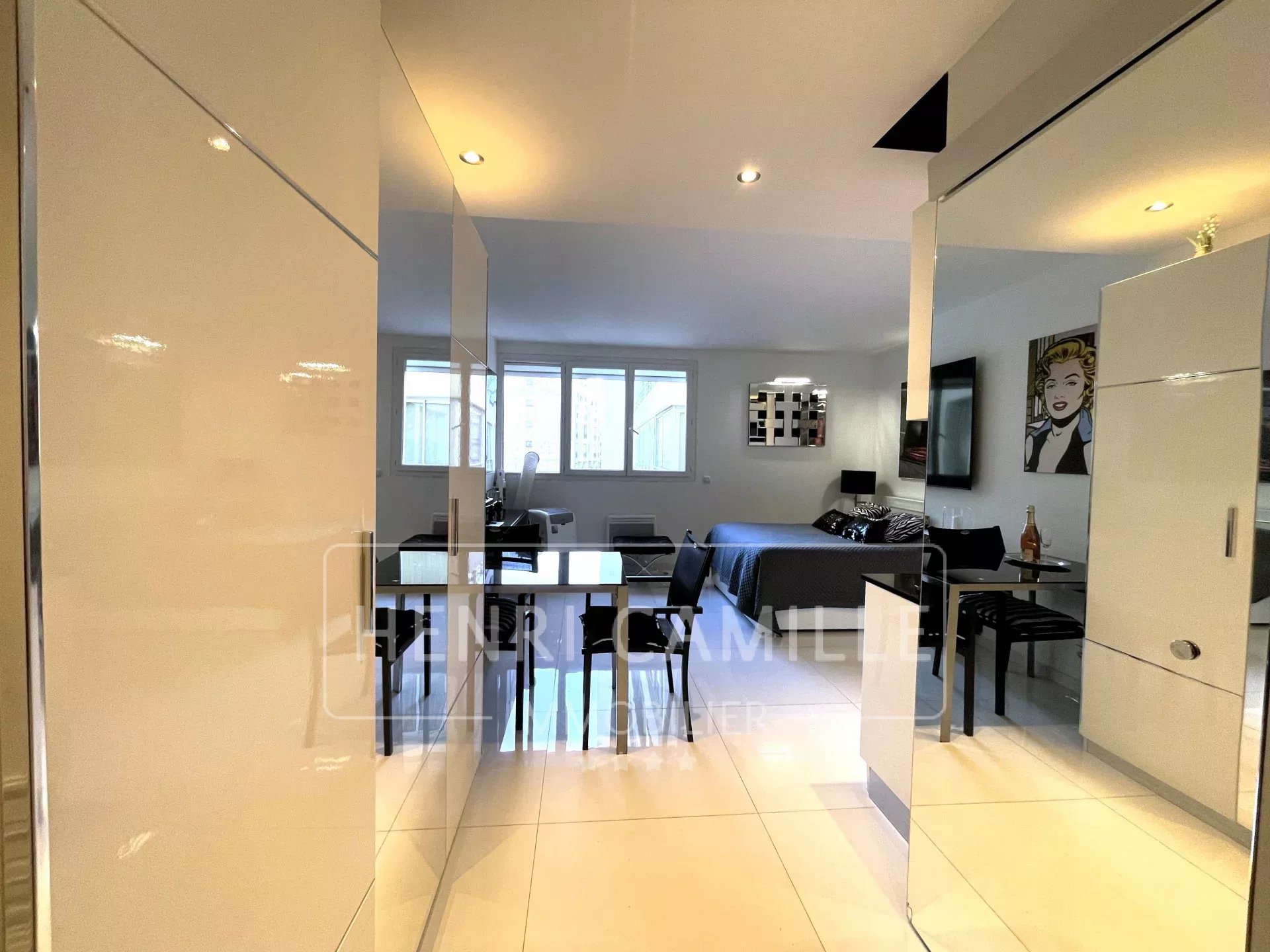 Au cœur de Cannes dans le secteur convoité du carré d'or, studio situé au 2ème étage, lumineux, entièrement équipé. Accès sur la Croisette directement. Idéal pied à terre et location saisonnière.
