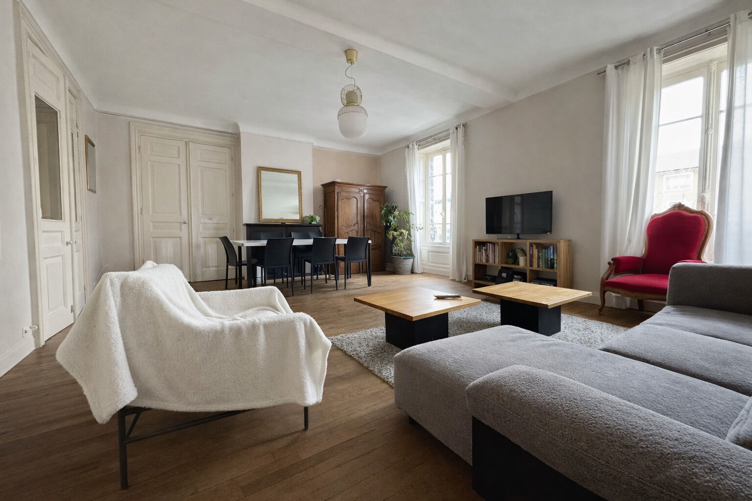 G91 - En plein centre-ville, à proximité immédiate de l'école Massillon et du jardin Lecoq, au sein d'un ancien immeuble bourgeois sécurisé, bel appartement de type T8 d'une superficie de 221,14 m², situé au 2ème étage sans ascenseur. Cet appartement au charme de l'ancien, avec moulures, parquets, cheminées et une belle hauteur sous plafond, se compose d'une vaste entrée, d'une cuisine semi-équipée (four, plaques de cuisson, hotte, lave-vaisselle et rangements), d'un grand séjour, de cinq chambres, d'un bureau, de deux salles de bains, d'une salle d'eau, d'une buanderie et de deux WC. Le logement bénéficie d'un chauffage individuel au gaz. Il est possible de louer une place de stationnement en parking souterrain à quelques pas de l'appartement. Le loyer mensuel charges comprises est de 1890 EUR. La provision sur charges mensuelle est de 134 EUR et comprend l'eau froide, l'entretien et l'électricité des parties communes, la taxe des ordures ménagères et l'entretien de la chaudière individuel. Le dépôt de garantie est de 1756 EUR. Les frais d'agence à la charge du locataire sont de 1990,26 EUR et comprennent notamment le coût de l'état des lieux. LIBRE À PARTIR DU 23 MARS. Les informations sur les risques auxquels ce bien est exposé sont disponibles sur le site Géorisques : www.georisques.gouv.fr. Vous pouvez contacter l'agence A2M Immobilier au 04 44 44 89 10 ou venir nous rencontrer directement sur place au 39 avenue Joseph Claussat à Chamalières. Tous les biens à la location et à la vente de l'agence A2M immobilier et le barème de nos honoraires sont disponibles sur notre site internet www.a2mimmobilier.com 1.Informations LOI ALUR :