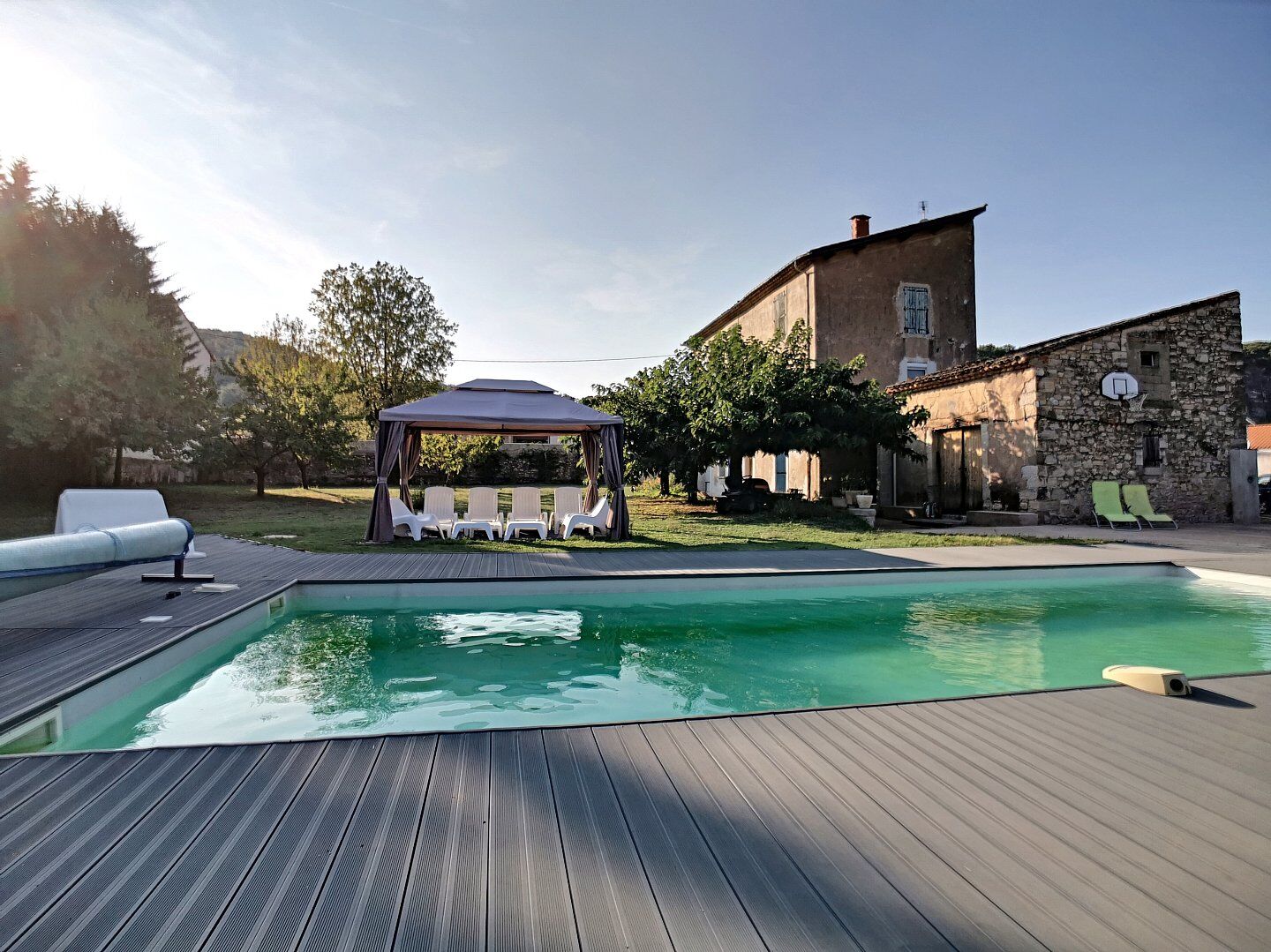 Une aire de campagne en plein milieu de la vie urbaine ! Propriété avec annexes et piscine au coeur de la ville et en bordure de l'Orb formant une opportunité d'investissement unique. Propriété de 7 pièces de 163 m² au coeur du centre-ville de Bédarieux, à quelques mètres seulement de l'ensemble des commodités, cette propriété rare offre un cadre de vie exceptionnel, alliant proximité urbaine et environnement naturel privilégié. Implantée sur une vaste parcelle de plus de 4 500 m² avec accès privatif à la rivière, avec la bâtisse non située en zone inondable, elle propose un équilibre unique entre confort, espace et intimité. La maison développe environ 163 m² habitables et séduit immédiatement par ses volumes généreux. L'espace de vie se compose d'un séjour spacieux, d'une cuisine fonctionnelle, d'un bureau, de quatre chambres ainsi que d'une superbe suite parentale avec salle d'eau et dressing. Un garage d'environ 30 m² complète la maison, ainsi qu'un grenier offrant un beau potentiel d'aménagement en appartement indépendant. Les extérieurs constituent un véritable atout. Le terrain, arboré et soigneusement entretenu, accueille de nombreux arbres fruitiers, un potager, un poulailler, deux puits, une cuisine d'été conviviale, une dépendance aménageable d'environ 30 m² sur deux niveaux, ainsi qu'une piscine de 10 x 4 mètres. L'accès direct à la rivière vient parfaire cet ensemble, offrant un cadre de vie rare et recherché, en plein centre-ville. Ce bien aux multiples possibilités conviendra aussi bien à une grande famille qu'à un projet de résidence principale avec activité touristique ou locative. Une propriété singulière et complète, difficile à retrouver sur le secteur. Visites sur rendez-vous.Informations LOI ALUR :