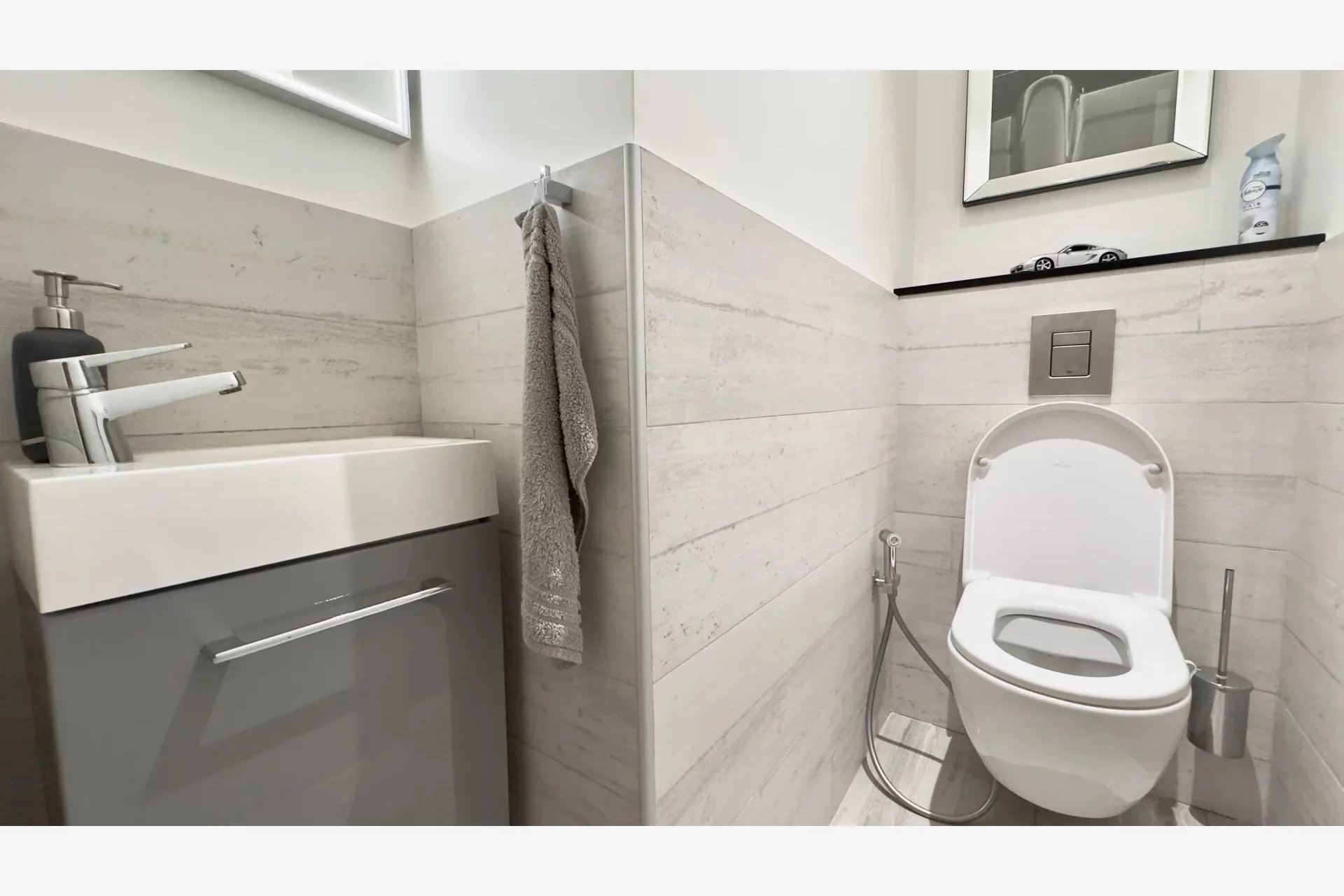 Entièrement rénové avec des matériaux de grande qualité, il offre des prestations soignées où chaque détail a été pensé pour conjuguer confort, design et praticité. L’appartement se compose d’une agréable pièce de vie avec cuisine sur mesure et îlot central esprit bar, d’une chambre dotée de deux placards, d’une salle d’eau contemporaine, d’un WC séparé ainsi que d’un espace buanderie discret.