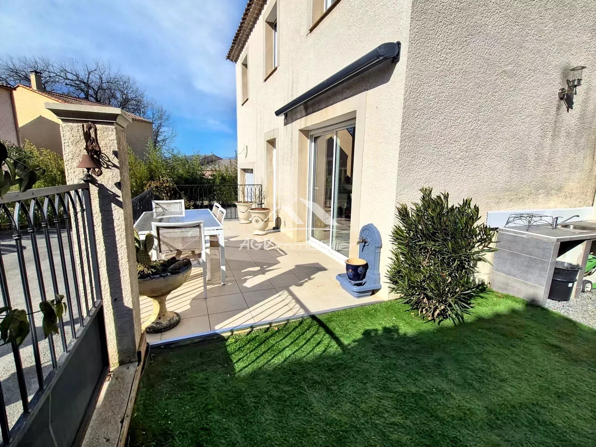 À 5 min d'Alès – En exclusivité Découvrez cette agréable maison élevée sur 2 niveaux, offrant de beaux volumes et des prestations confortables sans travaux à prévoir. Au rez-de-chaussée : - Un salon lumineux avec cuisine équipée - Une buanderie - Un WC indépendant - Un garage avec porte enroulable électrique À l’étage : - Trois chambres avec placards et climatisation - Une salle de bain - Un WC indépendant À l’extérieur : - Une grande terrasse avec store électrique - Une place de parking Cette maison allie confort et fonctionnalité. Contactez-nous dès maintenant pour plus d’informations ou pour organiser une visite.