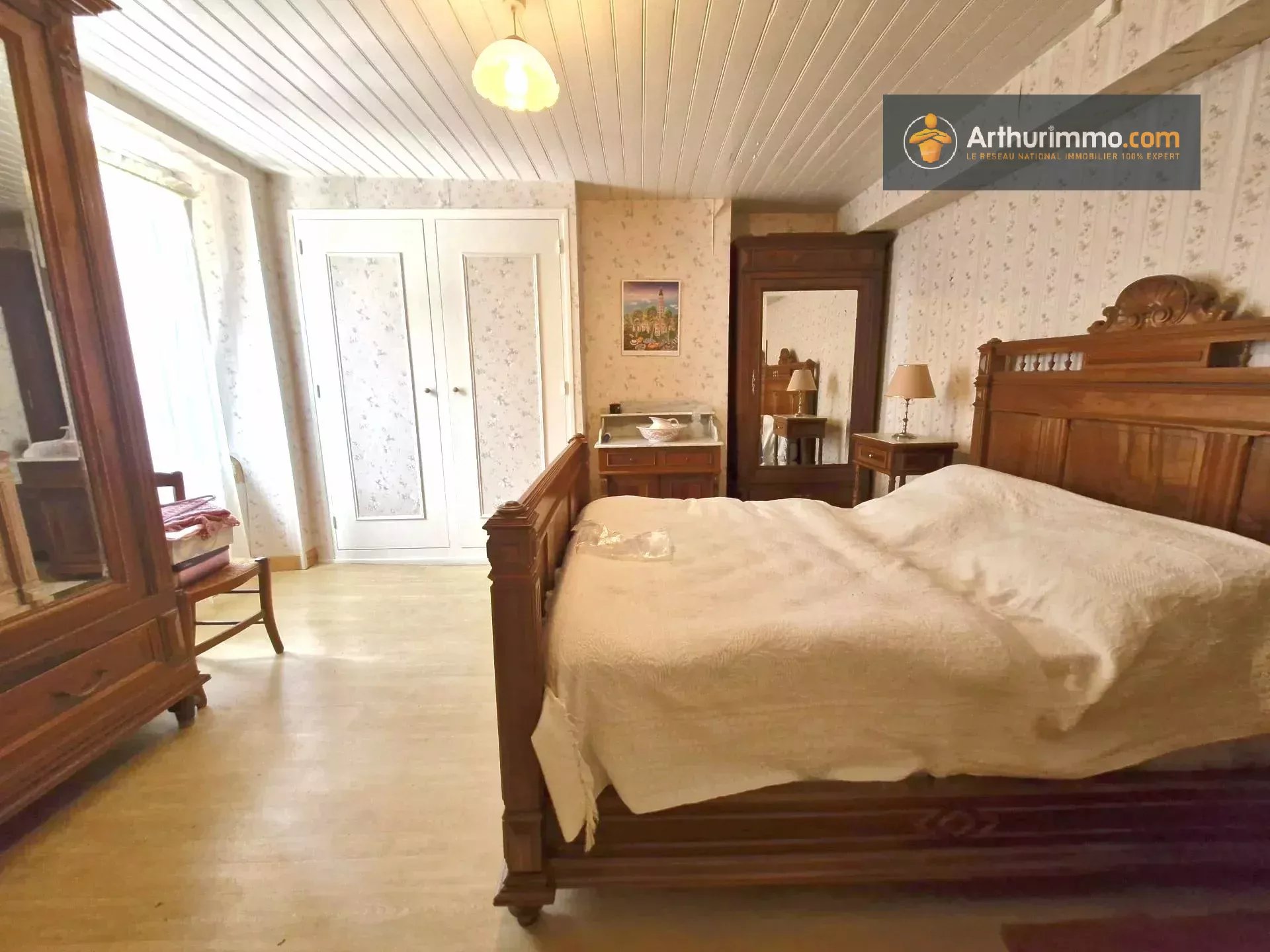Maison avec intérieur de style ancien, cuisine équipée en chêne massif, double vitrage PVC ainsi qu'ancien double vitrage, volets roulant auto en rez de chaussée et manuel à l'étage, électricité sécurisé en partie rénovée mais non aux normes. Huisserie intérieur en bon état.