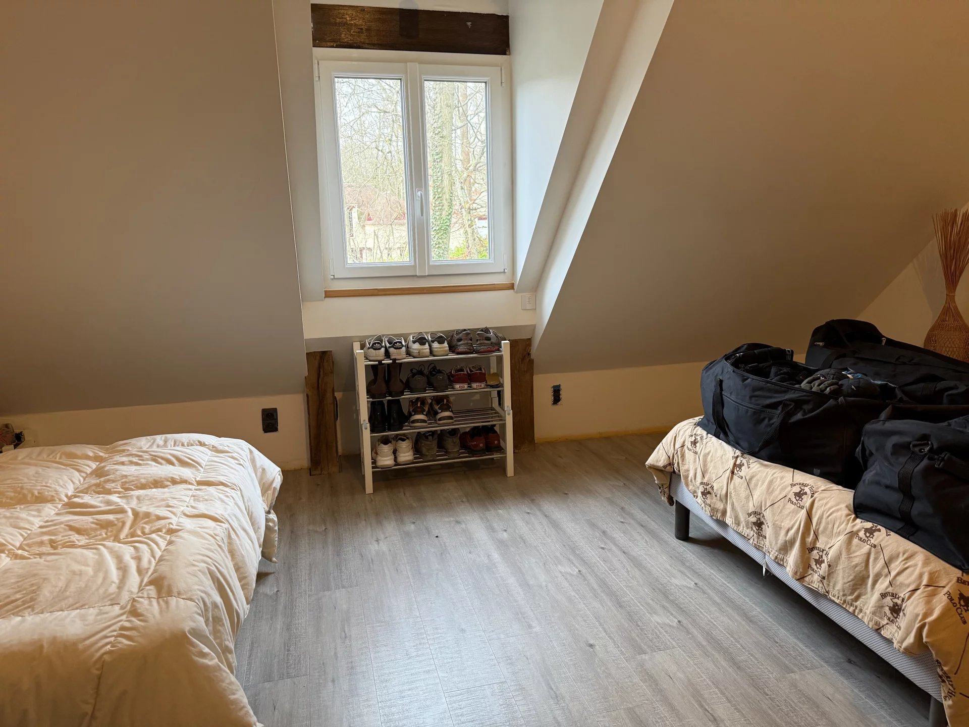 - A l’étage : palier ouvert (10.80m²), trois chambres (18.10 – 20.10 – 34.25m²), couloir (7.50m²), salle de bain avec bain et douche(9.25m²), wc/buanderie (3.90m²).