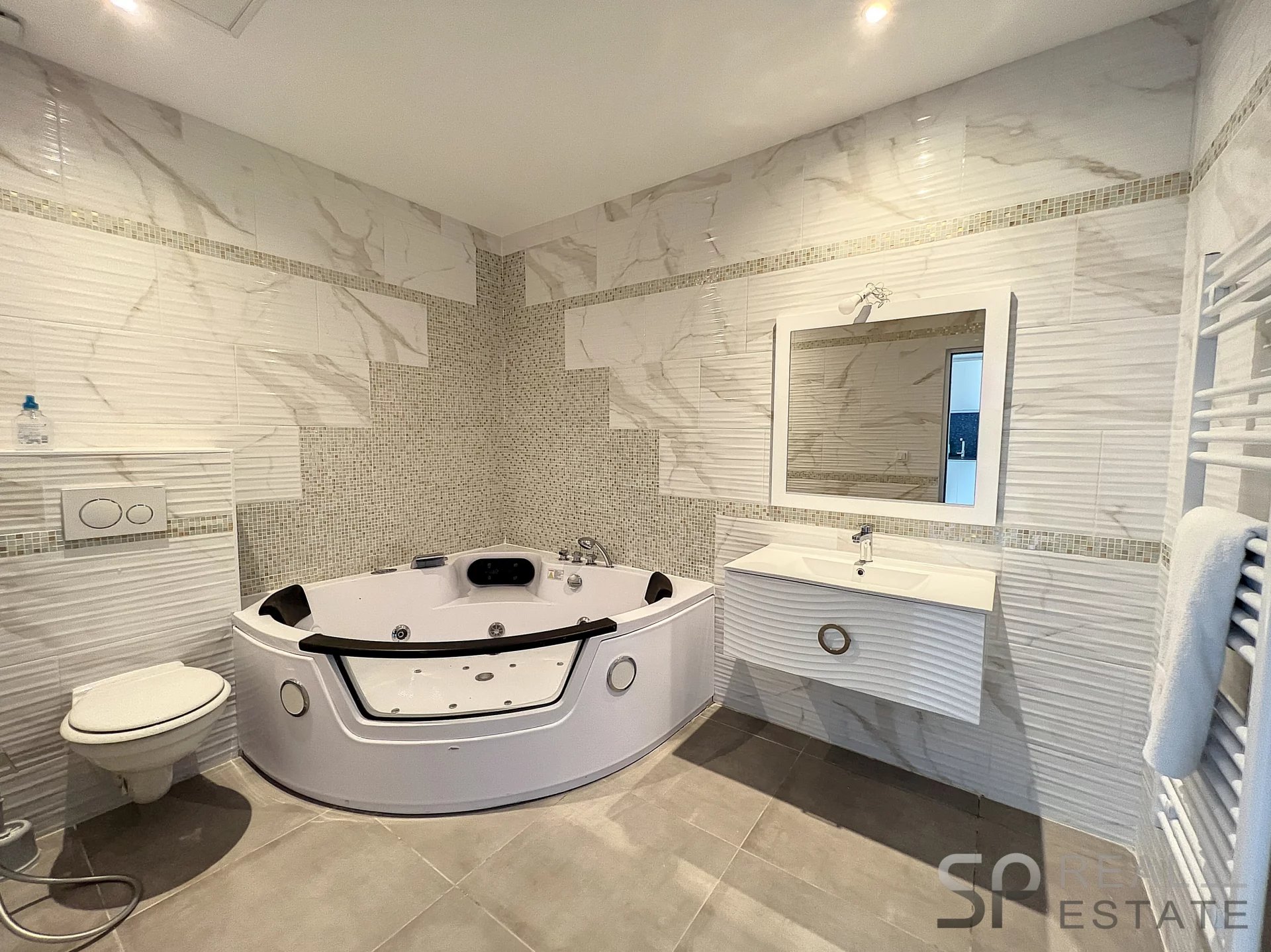 De plus, une spacieuse salle de cinéma, une cave à vin, un hammam et jacuzzi complètent ce rez de jardin "bien être".