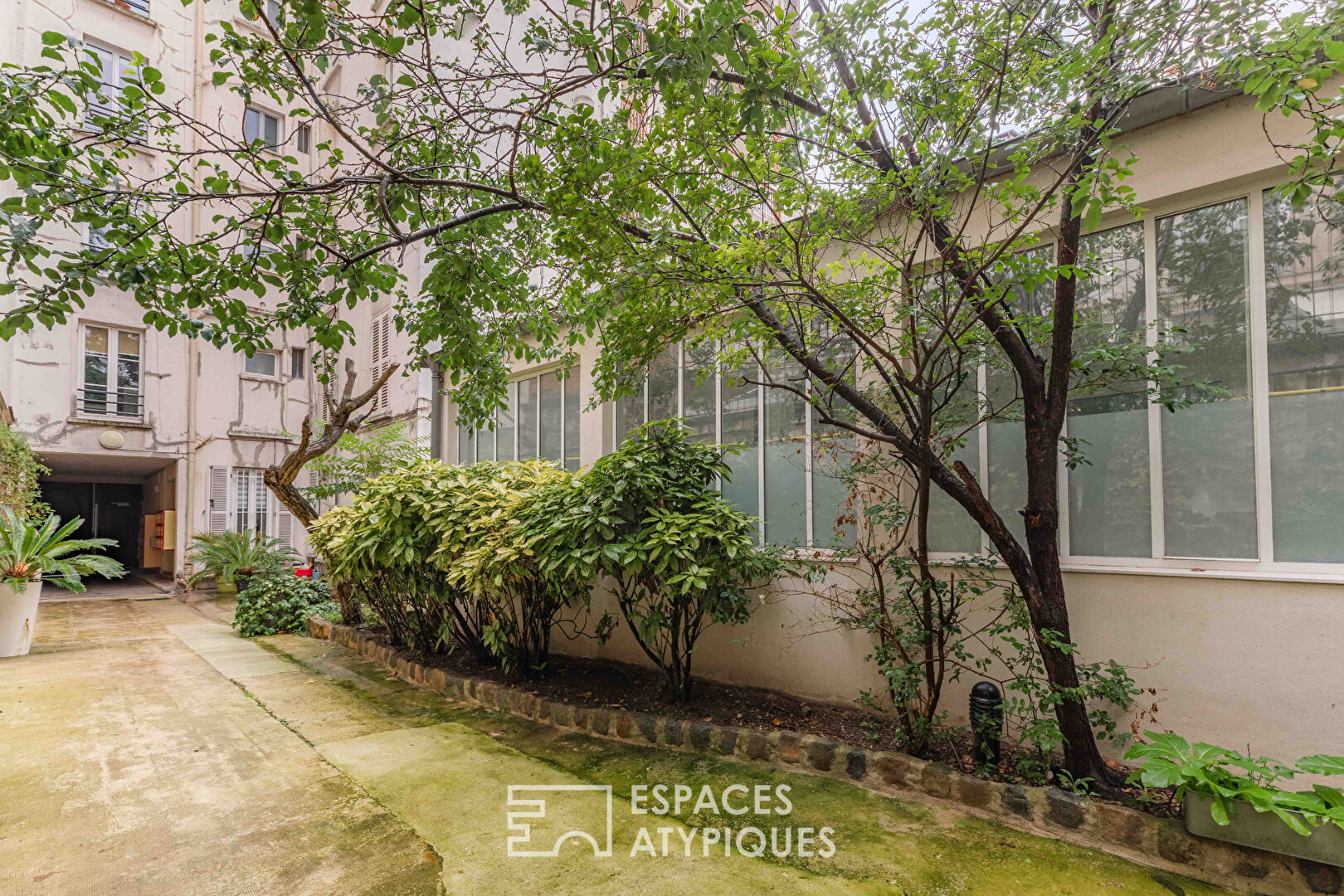Projet de maison avec surélévation : le prix global du projet est de 960 000 euros, répartis entre 550 000 euros pour le bâti existant, le permis de construire et le droit de surélévation, et 410 000 euros TTC pour les travaux de construction et d'aménagement. Plusieurs devis travaux disponibles en ce sens. Le futur acquéreur est libre de choisir l'entreprise de travaux. Nichée dans une cour arborée, au calme absolu, cette future maison de 102 m² sur trois niveaux, avec terrasse, offre une qualité de vie rare à Paris. Ce projet à réaliser soi-même, dont le permis de construire a été déposé, purgé de tout recours et validé par la copropriété, propose un véritable lieu de vie, baigné de lumière et ouvert sur l'extérieur. Elle accueillera de beaux volumes répartis entre les espaces de vie et les espaces nuit. La future pièce de réception, située au premier étage, bénéficiera d'une luminosité exceptionnelle grâce à ses 5 fenêtres et s'ouvrira sur une terrasse exposée sud-ouest. A l'étage supérieur, deux chambres spacieuses et lumineuses se partageront une salle de bains, et une terrasse végétalisée viendra offrir une respiration supplémentaire au projet. Le rez-de-cour, d'une surface de 35,21 m² Carrez, constitue la base de cette maison : aujourd'hui un local de type atelier il pourra être conservé comme espace indépendant ou réuni aux deux étages supérieurs pour créer un ensemble cohérent, selon vos besoins : deux chambres supplémentaires et une salle de bains par exemple. Ce projet est entièrement personnalisable : vous pourrez choisir les aménagements intérieurs, dessiner vos espaces selon vos envies, et sélectionner les matériaux qui donneront le ton de votre futur chez-vous. Ce projet rare et modulable est une opportunité unique pour les amateurs de rénovation et de personnalisation. Métro Porte de Champerret Ligne 3 Contact : Joachim +33 6 23 54 34 32 Copropriété de 26 lots - dont 26 lots habitation. (Pas de procédure en cours). Charges annuelles : 2789 euros. JOACHIM DRUART (EI) Agent Commercial - Numéro RSAC : 838 692 671 - Paris.