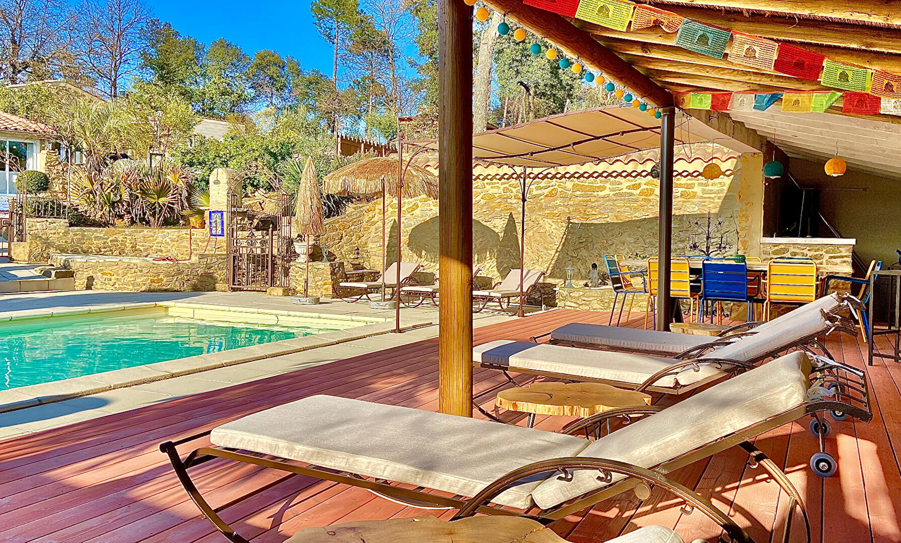 En position dominante, dans un environnement paisible, cette propriété offre 342 m² habitables sur un terrain de plus de 3 000 m² aménagé en restanques et entièrement cloturé. Elle comprend une maison principale et un gîte indépendant, idéal pour accueillir famille et amis ou pour poursuivre une activité d'accueil touristique. La propriété dispose de 6 chambres, 6 sde, 3 garages, d'une piscine à débordement chauffée, d'un terrain de pétanques, d'un poulailler, ainsi que de panneaux solaires. Un bien rare, alliant tranquillité, confort et fort potentiel. Aucun travaux à prévoir! (4.18 % honoraires TTC à la charge de l'acquéreur.)