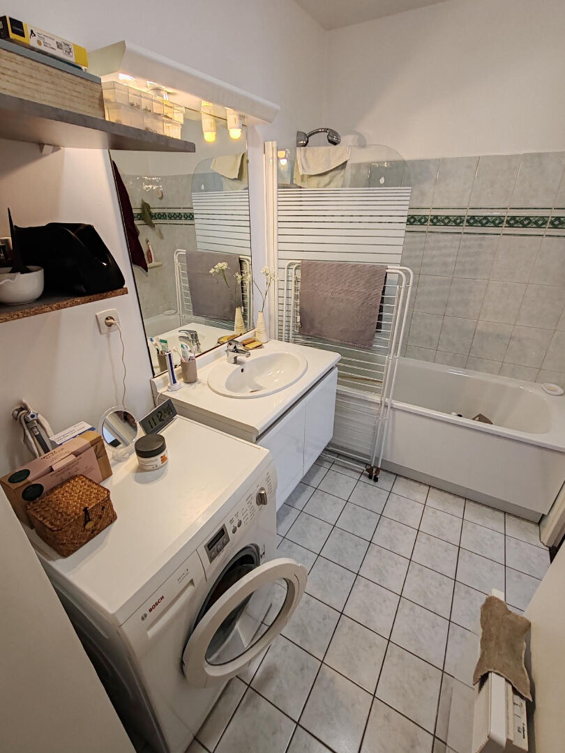 Hyper centre avec gare et commerces, appartement au 1er étage d'une résidence récente de type F2/46m² comprenant séjour avec balcon, cuisine indépendante aménagée et équipée, 1 chambre, salle de bains avec WC...1 place de parking en sous-sol... En parfait état, à saisir !