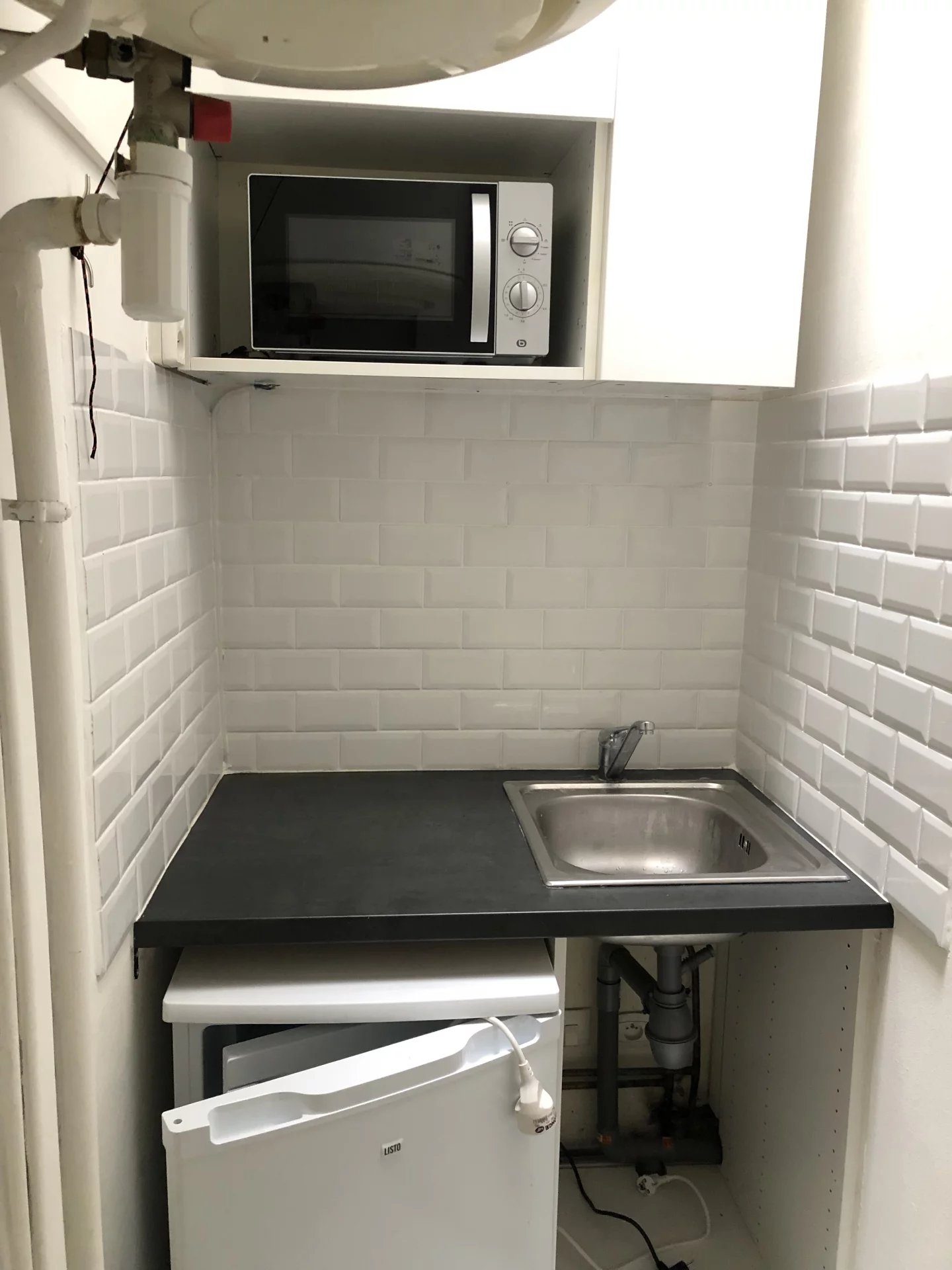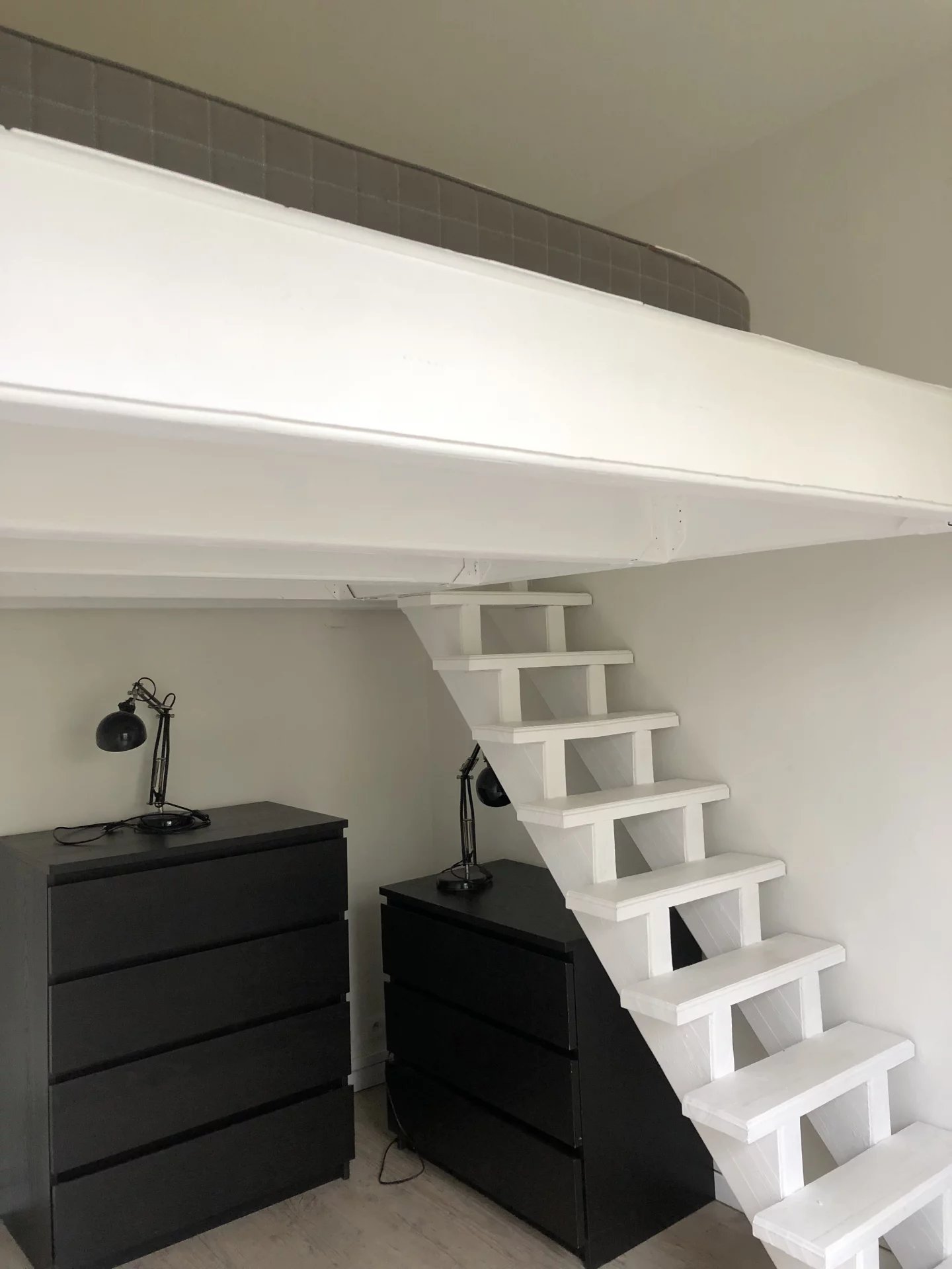Paris 18ème - PORTE DE ST OUEN / AVENUE DE ST OUEN Dans un immeuble ancien, situé au 6ème étage SANS ASCENSEUR. Charmant 2 pièces NU (ne pas se référer aux meubles sur les photos) d'une surface de 22,06 m2 comprenant : une entrée, un séjour, un coin cuisine séparé et aménagé, une chambre en mezzanine et une salle d'eau avec WC. LUMINEUX ET VUE DEGAGEE. LIBRE DE SUITE LOYER : 768,00 Euros /Charges : 50,00 Euros Dépôt de garantie : 768,00 euros Frais d'agence : 330,90 Euros